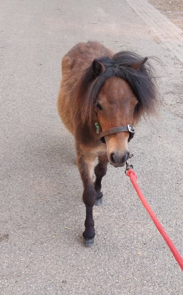 Tally is a curious and friendly Shetlander. He has a passport and chip and is registered with the Shetlander studbook. He already walks along with a halter. He also allows you to pick up his feet and groom him. The girls from the stable (10 years old) walk him around. If you would like more information, you can call or message 0031-6 19626363.