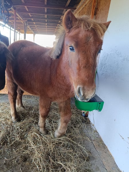 Vendemos nuestro potro Shetland de 1,5 años. Actualmente todavía es bastante travieso y necesita una mano firme. Se deja cepillar y limpiar las patas sin problemas. Actualmente, damos paseos con él cada dos días y la situación mejora constantemente. Sale sin problema solo del establo y también se queda solo. Las herraduras fueron cambiadas el 30 de noviembre. La desparasitación la recibió la semana pasada. Por ahora, todavía está con su madre, ya que nunca fue destetado. ¡Prioridad al carácter! Pero no lo regalamos. Como empieza a molestar a su madre, necesita encontrar un nuevo hogar lo antes posible. Por favor, solo contactar si hay interés real. No solo para guardar como favorito, sino también para venir a verlo. Es un perrito muy adorable.