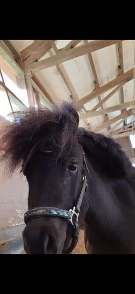 Penny ist ein Shetty das im Umgang sehr lieb und verschmust ist, sie wird von Kindern geputzt und geführt, ein paar mal saß auch schon ein kleines Mädchen auf ihr. Sie hatte vor 2 Jahren ein wunderschönes Fohlen. Sie selbst wurde als Fohlen prämiert. War immer gesund.