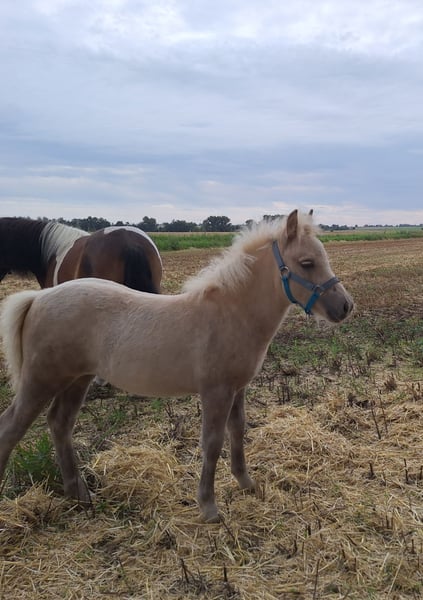 Rasse: Original Shetlandpony Geschlecht: Stutfohlen Alter: ca. 6 Monate Farbe: Palomino (Sonderfarbe) Stockmaß Endmaß: ca. 1,00 m – 1,05 m Abstammung: Mit vollständigen Papieren Mutter: Staatsprämienstute Wir bieten ein besonders typvolles Shetlandpony-Stutfohlen an. Sie wächst artgerecht im Herdenverband auf und zeigt ein ausgeglichenes, menschenbezogenes Wesen. Am liebsten würden wir sie zusammen mit ihrer Halbschwester(andere Anzeige) abgeben. Die beiden wären später bestimmt mal ein tolles Passgespann. ✅ Ausbildung/Handling: halfterführig gibt brav die Hufe kennt das Führen neugierig, freundlich und sehr umgänglich ✅ Besonders geeignet für: ✔ Zucht ✔ Kinder/Freizeit ✔ spätere Reit- oder Führponyarbeit ✔ Therapie Das Fohlen ist gesund, korrekt gebaut und zeigt gute Bewegungen. Regelmäßig entwurmt, Hufbearbeitung erfolgt.