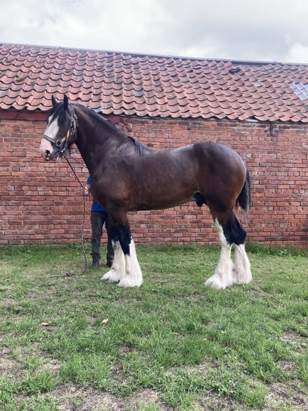 Hongre Shire de 3 ans. Très bien élevé. A été montré avec succès. A couvert en main et a également été collecté pour insémination artificielle. Très fertile. À vendre uniquement car il est lié à toutes nos juments.