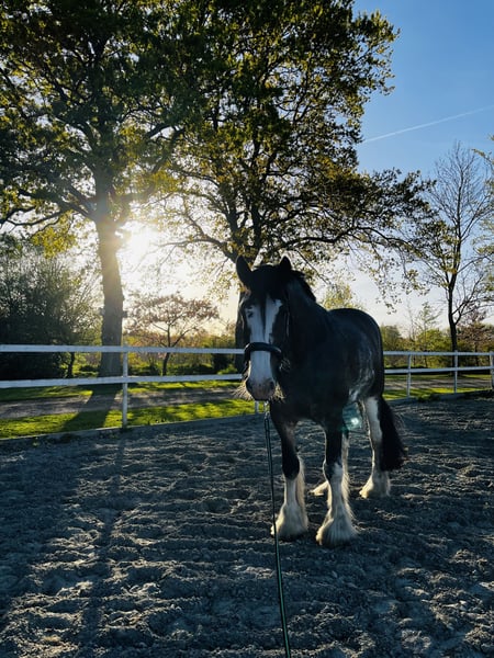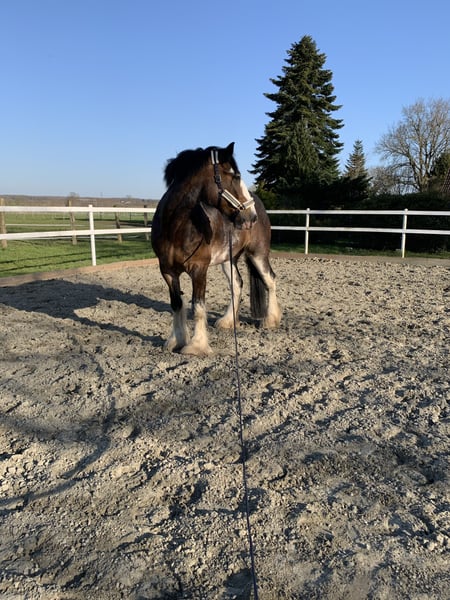 Unfortunately, I have to part with my Shire mare "Wolke" with a heavy heart, as I can no longer do her justice due to personal and family circumstances. "Wolke" impresses primarily with her consistently loving and honest nature. I purchased her directly from a breeder in the Netherlands when she was 3 years old. She was gently backed at age 6 and is open to all kinds of fun, always remaining calm and unshaken. We spent a lot of time in nature, during which she shows herself to be fearless and confident. She is a very curious and eager-to-learn mare. I am looking for a person or family who enjoys and is willing to continue her training and development, as unfortunately, this has been too limited so far. In the arena, she is easy to ride in walk and trot; she has only been in canter in the field so far. Wolke has no bad habits; if something seems new or strange to her, she simply stands quietly to observe the situation calmly. Wolke is familiar with dogs, cats, and children, and remains relaxed and friendly in these environments. She has some metabolic issues that manifest seasonally with mild signs of summer eczema or skin problems. With proper feeding, management, and care, these issues can be well controlled. She stays in her box at night and is turned out on pasture during the day. She is barefoot and loads easily alone. Due to lack of time and personal circumstances, Wolke has not been ridden in the past year, so any trial riding would need to be very limited, as she needs to rebuild her musculature. I wish for her a new, loving home where she can receive the time and attention she deserves! I can also very well imagine her as a broodmare or therapy horse. She has full papers from the Shire Horse Society in England. An absolute heart horse who would go through thick and thin with her human! This is not a distressed sale, so place takes precedence over price!