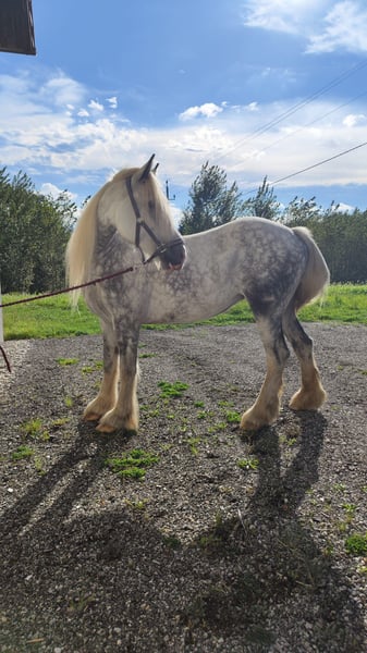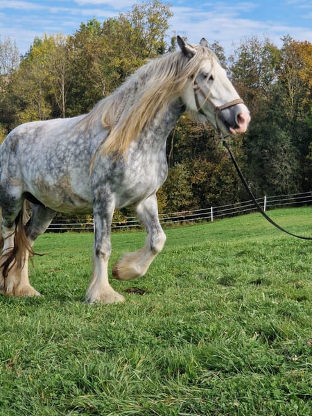 Beautiful Shire Horse Mare for Sale – Perfect for Leisure Activities We are offering an impressive Shire Horse mare, born in 2018. This elegant grey mare stands at a height of 171 cm and impresses with her friendly, calm nature. She is ideally suited for leisure riding and captivates with her relaxed demeanor and charming personality. The mare is healthy, regularly vaccinated, and well cared for. She is accustomed to human interaction, familiar with farrier and veterinarian visits, and ready for new adventures in your leisure riding activities. Please feel free to contact me for more information or if you are interested. Viewings and trial rides can be arranged by appointment. Contact me to get to know this special Shire Horse mare!