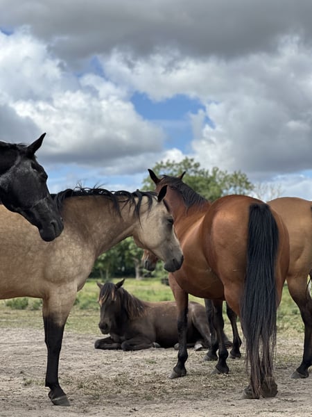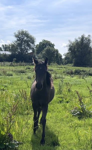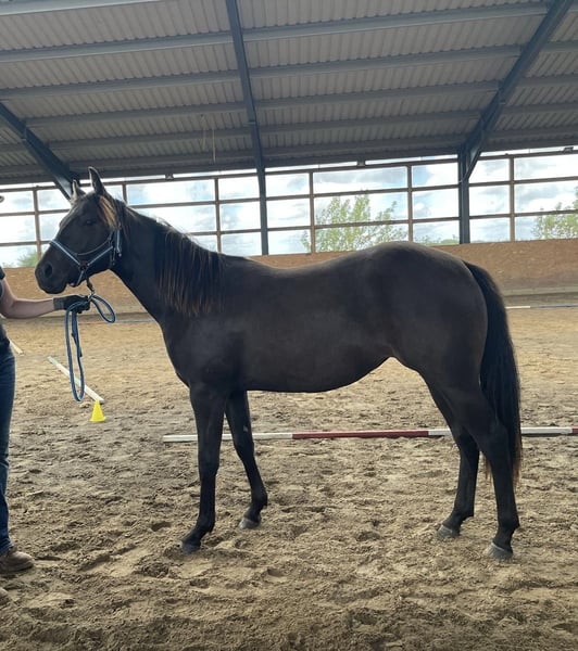For sale is a stunning American Quarter Horse mare with the interesting color "smoky black," born on March 13, 2024. She currently measures approximately 140 cm at the withers, with an expected final height of around 150 cm. This makes her ideally suited for reining and other Western riding disciplines. The mare impresses with her clarity, fearless nature, and elegant appearance, as well as her promising potential in reining competitions. She is healthy, well-socialized, and has been lovingly raised. Transitioning into a new herd should be smooth. "Joy" is the perfect partner for riders seeking a young horse with great talent. If interested, I am happy to provide further information and additional pictures.