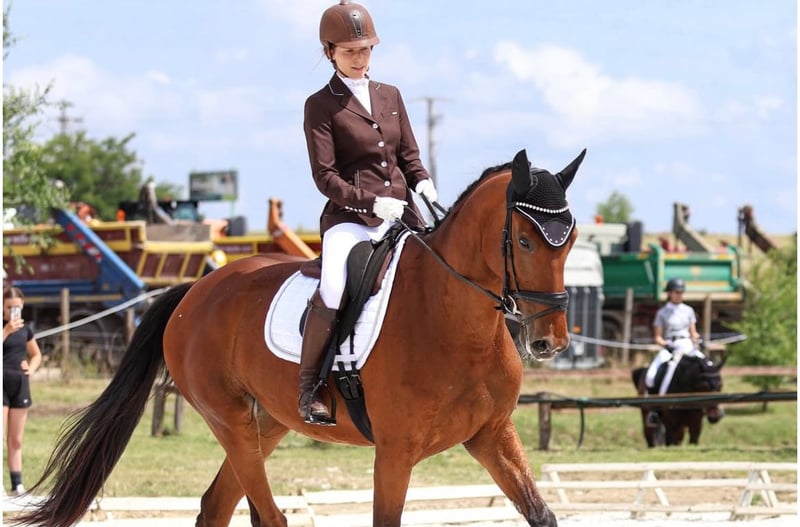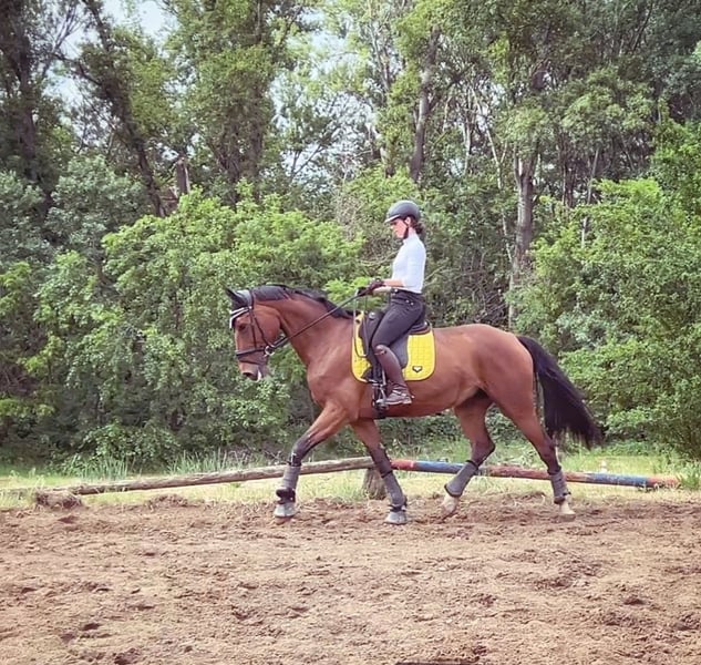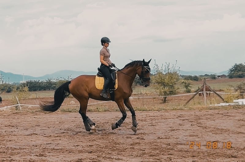 Gréti is a really kind mare. She's not a typical angry, moody mare; even when she's in heat, it's virtually unnoticeable from a riding perspective. She craves affection and care. She loads easily onto a horse trailer with the promise of a few treats, and can be washed and clipped without any issues. She is regularly shod on her front two feet and receives her vaccinations. If you prefer to work slowly with her, she'll adapt and work at that pace. If you accustom her to more energetic work, she will work energetically. If she gets scared of something, she remains controllable and can be stopped. Her fear can be managed with calm and decisive riding, and she will then work well. At competitions and unfamiliar places, she might show a little nervousness but still worked well and she work in concentration. She has no malicious intent. I believe that given 1-2 month to her, she could turn into an excellent horse for children too. Now I am training her for competiton. She is learning the half-pass, the shoulder-in, and the counter-canter. X-ray taken 2.5 years ago showd nothing concerning. She had a ligament strain in one of her front legs, but it's problem-free now, and she is in full training. The reason for selling is that I'd like to buy a young dressage horse :)