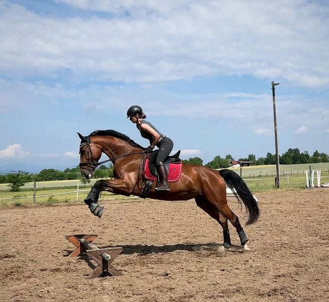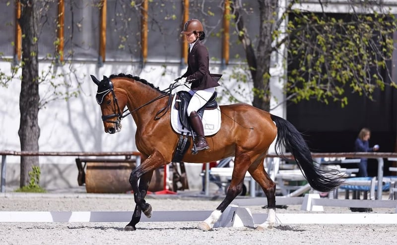 Gréti è una cavalla davvero gentile. Non è una tipica cavalla arrabbiata o lunatica; anche quando è in calore, è praticamente impercettibile dal punto di vista della monta. Ha bisogno di affetto e cure. Sale facilmente su un rimorchio per cavalli con la promessa di qualche leccornia e può essere lavata e tosata senza problemi. Viene regolarmente ferrata sulle zampe anteriori e riceve le sue vaccinazioni. Se preferisci lavorare lentamente con lei, si adatterà e lavorerà a quel ritmo. Se la abitui a un lavoro più energico, lavorerà con energia. Se si spaventa per qualcosa, rimane controllabile e può essere fermata. La sua paura può essere gestita con una monta calma e decisa, e allora lavorerà bene. Alle competizioni e in luoghi sconosciuti, potrebbe mostrare un po' di nervosismo, ma lavora comunque bene e si concentra. Non ha intenzioni maliziose. Credo che, dato 1-2 mesi, potrebbe diventare un ottimo cavallo anche per i bambini. Ora la sto addestrando per le competizioni. Sta imparando il mezzo-passaggio, il spalla dentro e il contro-canter. Le radiografie effettuate 2,5 anni fa non mostrano nulla di preoccupante. Ha avuto una distorsione ai legamenti in una delle zampe anteriori, ma ora non ha problemi ed è in pieno allenamento. Il motivo della vendita è che vorrei acquistare un giovane cavallo da dressage :)