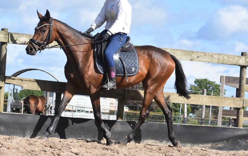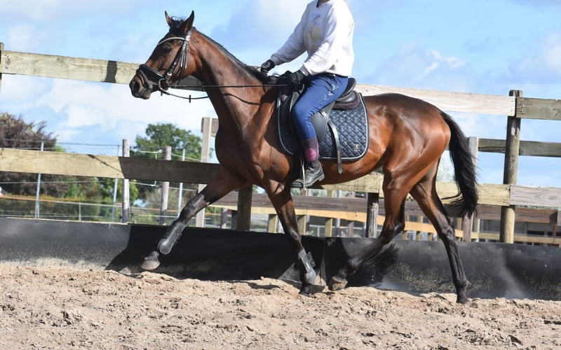 Hier is Yvy, een prachtige jonge dame van 3,5 jaar oud met een stokmaat van ca. 1.55m. Haar afstamming is Doyen x Little Nugget. Ze heeft een chique, elegante bouw en weet zeker de aandacht te trekken zodra je de stallen binnenloopt. Ze heeft een ontzettend lief en eerlijk voorkomen. Ivy heeft 3 fantastische gangen en is daarmee geschikt voor meerdere takken van de sport. Ondanks haar jonge leeftijd pakt Yvy het werk hier heel goed op. Ze werkt graag samen met haar ruiter en doet haar best om alles zo goed mogelijk te begrijpen. Momenteel wordt ze bij ons dressuurmatig en recreatief doorgereden en laat ze daarbij een fijne instelling en veel potentie zien. Ze is geheel vrij van gebreken. In bezit van zeer recent keuringsrapport inclusief bloedafname. Prijs 3950- incl. merkzadel en dekje