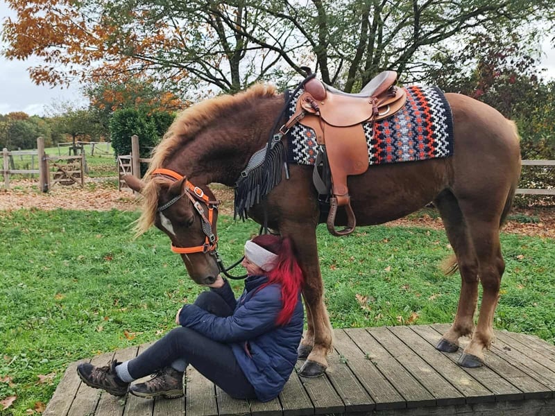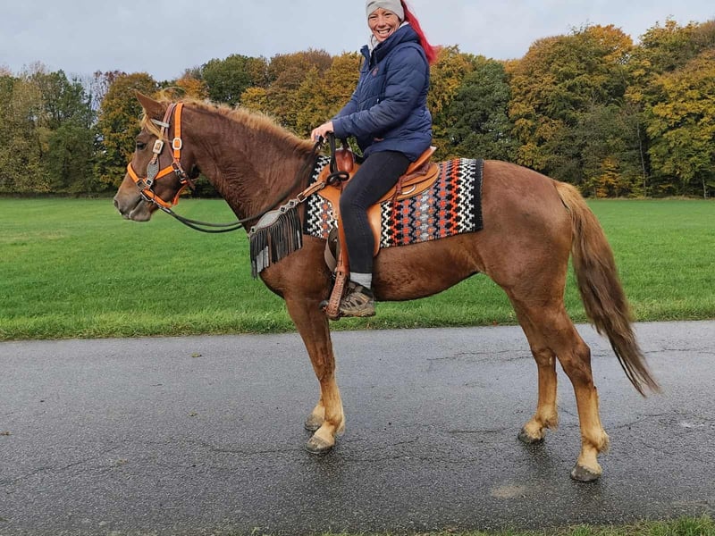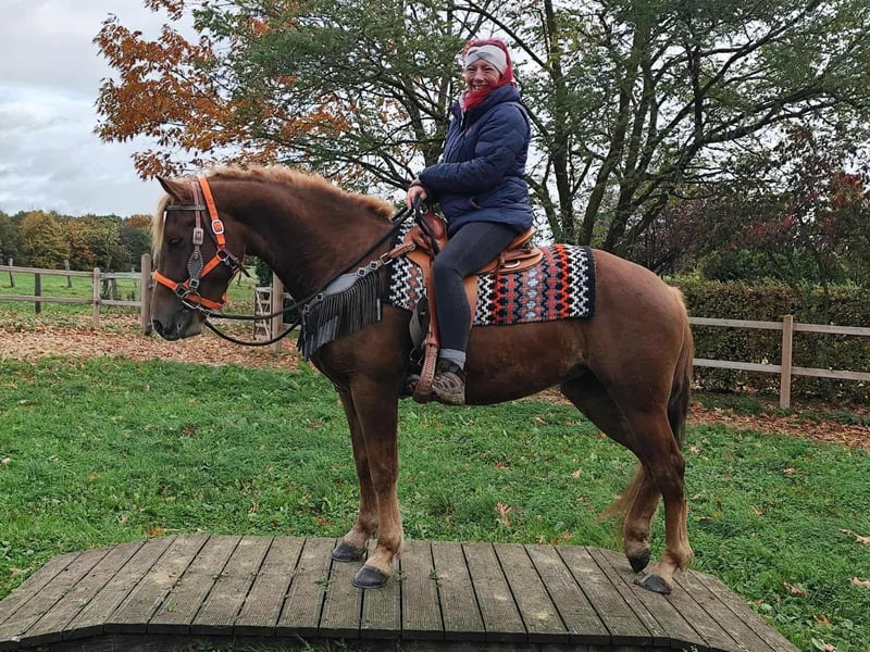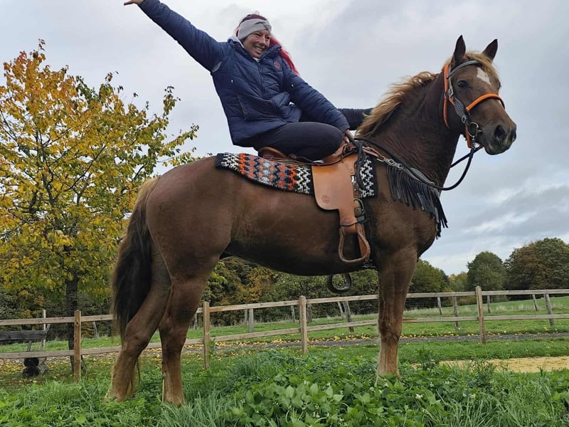 Freizeitpartner -Wanderreitpferd-Fuchsstute MINUTY Alter: 4,5 Jahre Stockmaß: ca. 1,53 m Preis: 5900 AKU: vorhanden E-Paß u. Microchip ✨ Über die Stute: Diese nette Fuchsstute Stute hat ein freundliches Wesen. Sie ist brav im Umgang,unter dem Sattel brav und zeigt sich stets menschenbezogen und lernwillig. Mit ihrer charmanten Art ist sie eine tolle Freizeitpartnerin . Ihr Westernsattel und Zubehör kann für 1500,- mit ins neue Heim gebracht werden . Perfekt für: Reiter, die eine junge Stute suchen, die sowohl im Gelände als auch in der Freizeit überzeugt und noch weiter gefördert werden kann. Kennt Herdenhaltung im Offenstall sowie auch Boxenhaltung . Unsere Pferde: – regelmäßig entwurmt – vom Schmied & Osteopathen betreut Hofladen: Westernsättel, Trensen, Zubehör Transport & Zubehör auf Wunsch günstig organisiert Unser Service: ✅ 3 Monate Umtauschrecht ✅ Proberitt: 35 €, jedes weitere Pferd 25 € (beim Kauf am selben Tag angerechnet) ✅ 100 € Sofort-Rabatt bei Abholung/Transport am selben Tag ✅ Persönliche & ehrliche Beratung Anfragen bitte nur telefonisch: 0171 – 4001968 Täglich erreichbar von 8–20 Uhr ⚠️ Keine E-Mail oder WhatsApp ⚠️ Alle Angaben ohne Gewähr