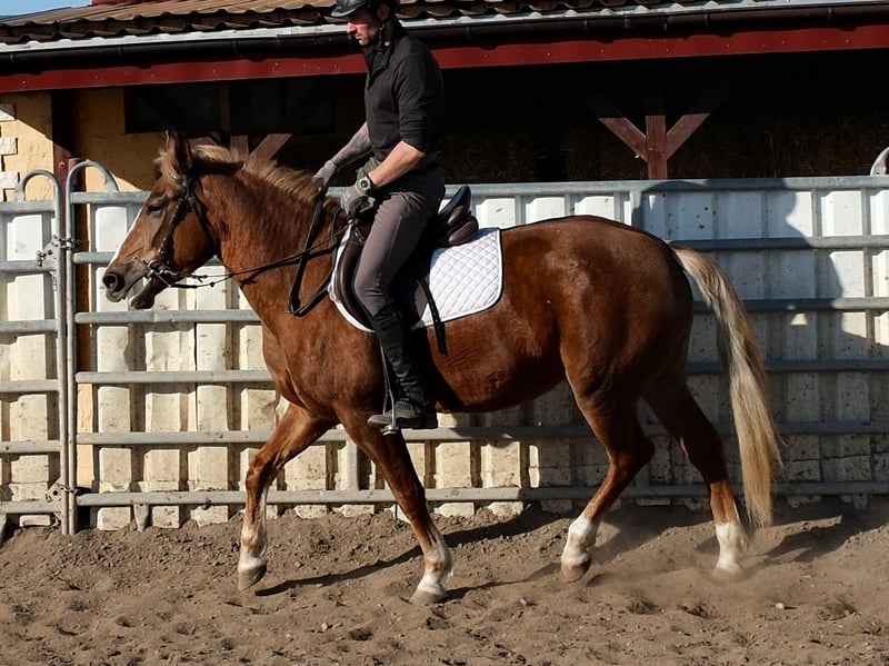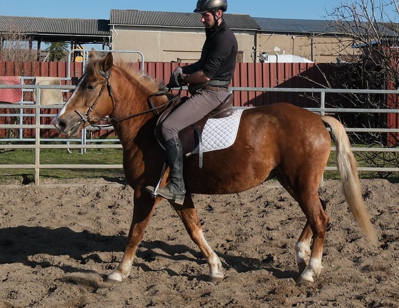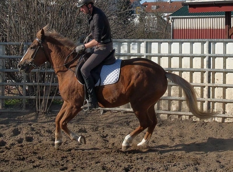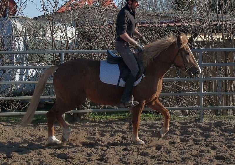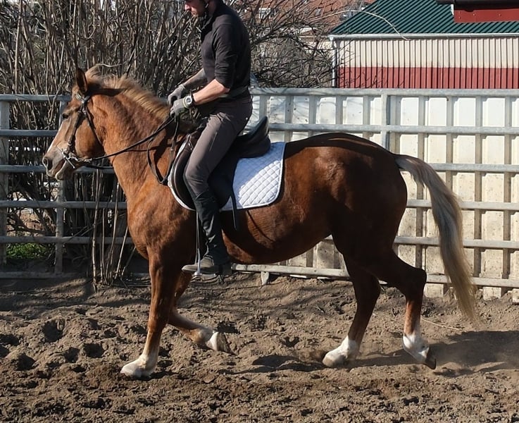 Bewegungsstarke,fleißige und sehr menschenbezogene kleine Warmblutstute. Liesa ist sehr gut in allen Gangarten auf dem Platz und in der Halle geritten. Weiterhin ist sie problemlos allein im Gelände und Straßenverkehr geritten. Geländereiten,Western,Schulbetrieb Sicher im Straßenverkehr und Gelände. 6 Jahre, 154cm Bei Interesse bitte anrufen, keine Mail! Für eventuell auftretende Fehler in der Beschreibung gilt keine Gewähr! Tel.: 0173-3843407 Da es sich um ein lebendes Tier handelt, sind dies subjektive Eindrücke des Anbieters und keine zugesicherten Eigenschaften des Tieres! Ständig schöne Fahr-u.Freizeitpferdesowie neue Kutschen verschiedener Modelle preiswert im Angebot. Anschrift Stall: 99628 Buttstädt, Oberwendenstraße 39