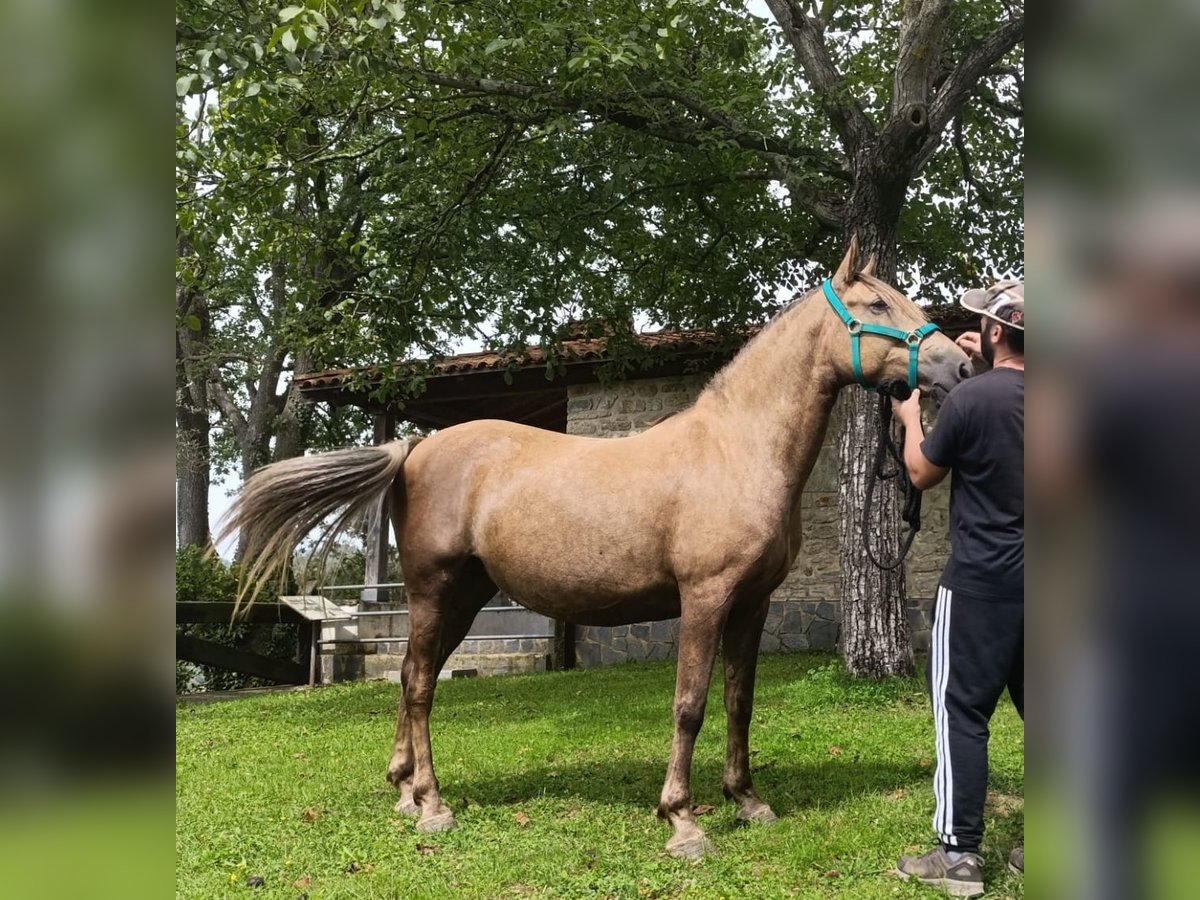 I present to you Luna, a Lusitano-Arabian mare (75% Lusitano - 25% Arabian) with a striking toasted palomino coat (a rare coloration). She stands approximately 1.55 meters tall and has a strong build. At the perfect age for starting under saddle, she is 6 years old. Luna is well-mannered and accustomed to human handling.