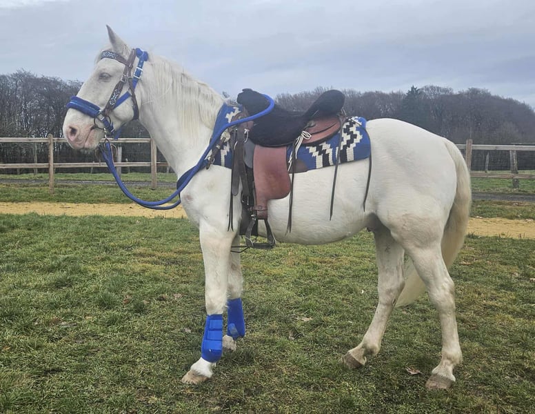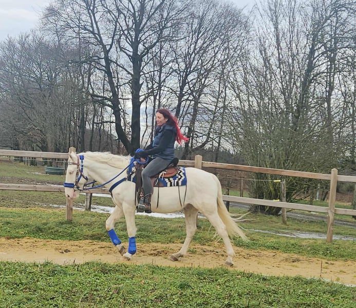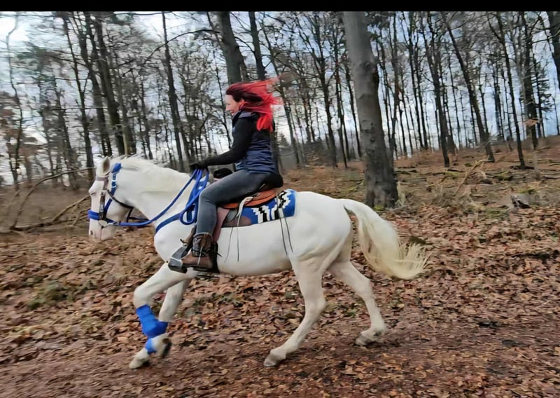 In Western style, a nice mixed gelding – calm, gentle, and a reliable leisure partner Age: 8 years Height: approx. 15.3 hh Price: €5,500 Pre-purchase exam: available ✨ Description: This handsome mixed gelding impresses with his calm, friendly nature and his great reliability. In daily handling, he is very well-behaved, uncomplicated, and easy to manage. Under saddle, he is very pleasant to ride, cooperative, and honest. He gives his rider a good feeling and is simply fun to ride. He is especially suitable for trail rides and long-distance rides – he is confident in the terrain, balanced, and enjoys both long stretches and relaxed rides. An ideal partner for anyone seeking a dependable leisure horse, with which they can spend stress-free time and enjoy nature. Not a competitive sport horse, but an honest companion for life. Ideal for: Leisure riders, trail riders, or reintegration riders looking for a calm, relaxed, and reliable horse. Our horses are regularly: – dewormed – attended by the blacksmith – osteopathically checked Transport can be arranged at a favorable rate upon request. Please contact us exclusively by phone: 0171 – 4001968 Available daily from 8 a.m. to 8 p.m.