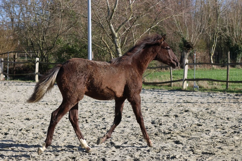 Zeer mooi en veelbelovend smokey black merrieveulen van 8 maanden met een opvallende uitstraling en sterke bloedlijn. Afstamming: Moeder: Cayetana CS – uit de bekende Ermitaño-lijn. Interessant gefokt met oog op kwaliteit, beweging en toekomst in sport/fokkerij/recreatie. Kleur & uitstraling: Unieke smokey black kleur met een bijzondere, volle staart met bijzondere kleur die haar extra laat opvallen. Beweging: Beschikt over zeer goede, ruime en elastische gangen met veel balans en kracht. Beweegt boven gemiddeld en laat nu al kwaliteit zien. Karakter & omgang: • Braaf en sociaal • Nieuwsgierig en werkwillig ingesteld • Groeit op in kuddeverband Opvoeding: • Halstermak • Kent het veulen-ABC • Netjes in de omgang Toekomst: Een veulen met veel potentie voor zowel sport als fokkerij of recreatie. 📍 Bezichtiging mogelijk op afspraak 📩 Voor meer info, video’s of verdere details stuur gerust een bericht