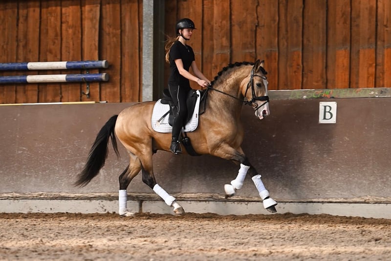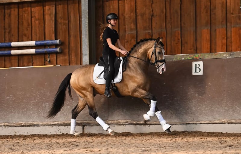 🌟 CAPRICO – Ein echtes Ein-Leben-Horse 🌟 Für unseren Superstar Capricho suchen wir ein fünf Sterne Zuhause. Ein Pferd mit atemberaubender Präsenz, außergewöhnlicher Qualität und einem goldenen Charakter – wirklich ein Pferd, das jedes Herz erobert. Eine einmalige Gelegenheit für den anspruchsvollen Reiter. 🩶 Profil Capricho ist ein im Jahr 2021 geborener Wallach mit einer Schulterhöhe von ca. 1,62 m. Er zeigt drei herausragende Gänge, wobei der Galopp ein echtes Highlight ist. Ein talentierter Youngster, perfekt geeignet für Dressur, aber ebenso vielversprechend für die Working Equitation. ✨ Charakter & Umgang Capricho ist in jeder Hinsicht ein Traum im Umgang – brav am Boden, lädt problemlos auf den Hänger und bleibt in neuen Umgebungen entspannt. Er wurde vor zwei Monaten geldet und zeigt möglicherweise noch eine kleine Portion jugendlichen Spieltrieb gegenüber anderen Pferden. 🩻 Gesundheit & Tierarzt Capricho wurde umfangreich röntgenologisch untersucht, alle Bilder mit der Note „ausgezeichnet“ (nur 1). Er hat keine Stallvorgeschichten und ist vollständig bereit, sein nächstes Kapitel zu beginnen. 📞 Bei ernsthaften Anfragen bitte nur telefonisch oder per WhatsApp unter +31 6 11214614 kontaktieren. Dieses außergewöhnliche Pferd liegt in einer höheren Preiskategorie. Weltweiter Transport kann gern organisiert werden.