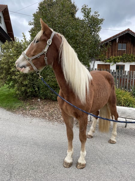 Wir verkaufen unsere 2,5 Jahre alte Stute Nora. Nachdem sie diesen Sommer auf der Alm verbracht hat, ist sie nun bereit für ihre weitere Ausbildung. Nora ist regelmäßig dem Hufschmied vorgestellt, kennt Straßenverkehr, regelmäßig geimpft und ist halfterführig. Auch kleine Kinder sind kein Problem. Diese durfte auch schon auf ihrem Rücken sitzen, was sie problemlos duldet. Im täglichen Umgang ist Nora sehr umgänglich und vernünftig.