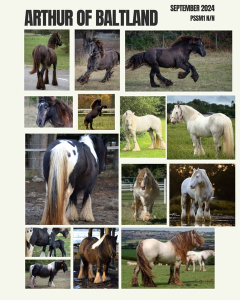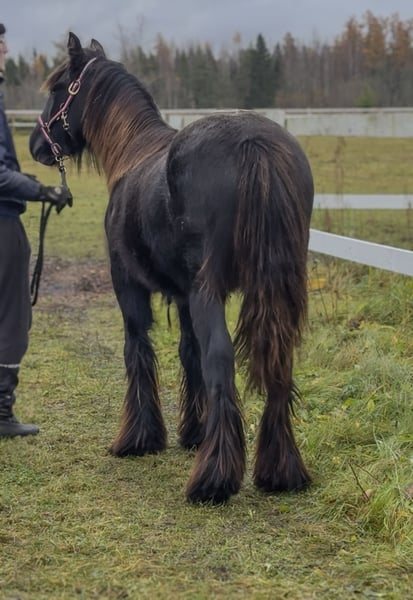 Meet this handsome young colt, born in September 2024, expected to grow to around 155 cm / 15hh. From day one, he’s shown a gentle and curious nature – a truly easy-going companion in every way. Born in September 2024, expected to mature around 155 cm / 15hh. 🐴✨ Arthur stands 13 hh/ 135cm as an 13 month old. This lovely boy has a very friendly and easy temperament, making him a pleasure to handle and work with. ✅ Health & Care: PSSM n/n; G/n (additional genetic tests available on request) DNA verified breeding, recorded in an Irish Cob Passport (FSIC ry) Healthy, vaccinated, dewormed, and regularly trimmed He is well-handled, can live both in a stable or electric-fenced paddock without issues. If you’re looking for a kind-hearted young colt with great potential, he’s the one! Located in Estonia, with transport available worldwide.
