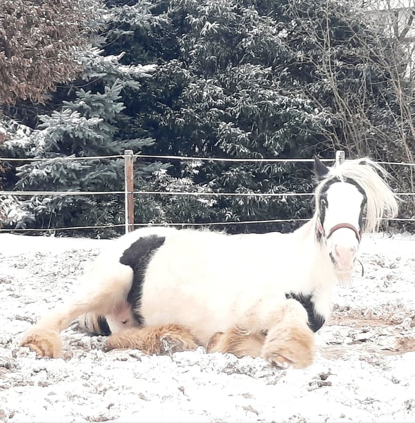 Tolle Rappscheck Tinkerstute, 15 Jahre, 147 cm, mit einem blauen Auge, artig im Umgang und beim Reiten, schön zu reiten, bewegliche sportliche Art, keine Rehe oder Mauke, kennt Hunde und Traktoren, nicht schreckhaft, schmiede- und verladefromm