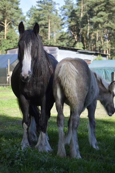 Z powodu zmniejszenia stada sprzedaję moją ciężarną klacz Appaloosa. Urodziła się 24.06.2022, ma obecnie około 145 cm wzrostu i jest bardzo mocna. Z powodu wieku jeszcze nie była wsiadana. Jest w ciąży na 05/2026, ogier hodowlany to ogier Irish Cob Partbred Smoky Black Appaloosa Spotted (na dwóch ostatnich zdjęciach, w wieku 2 lat ma 150 cm wzrostu). W razie pytań proszę pisać.