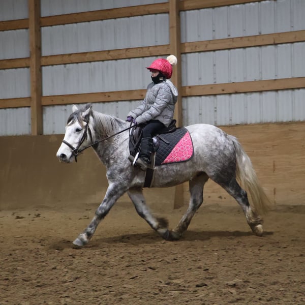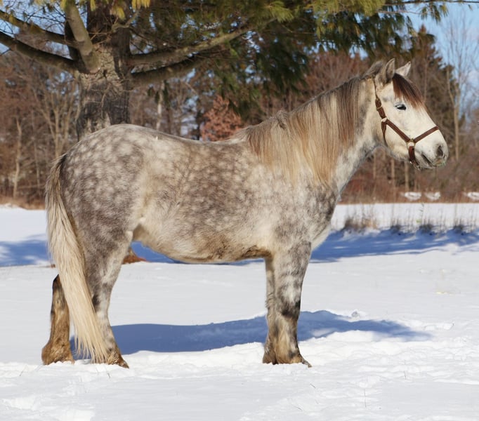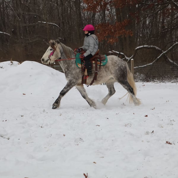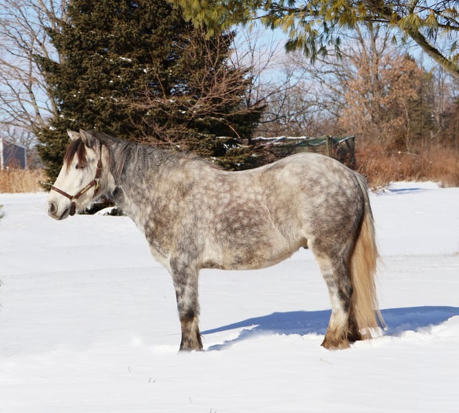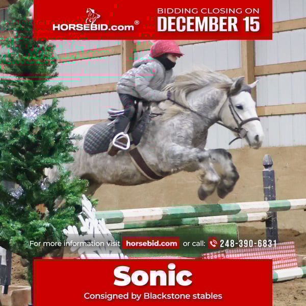 🎄𝐓𝐇𝐄 𝑯𝒐𝒍𝒊𝒅𝒂𝒚 𝐂𝐋𝐀𝐒𝐒𝐈𝐂🎄 Happening now thru MONDAY | DECEMBER 15th - Available EXCLUSIVELY on HorseBid's website! For more details and to register visit: www.Horsebid.com CONSIGNOR CONTACT: Blackstone Stables 248-390-6831 LOCATION: Howell MI BREED: Miniature Gypsy Vanner REGISTERED: Yes REGISTERED NAME: Good Time Boy Hugo COLOR: Dapple Grey HEIGHT: 12.2 AGE: 3 GENDER: Gelding Good Time Boy Hugo or "Sonic" as we call him at home is proudly being offered for sale! Sonic is a registered with the Gypsy Sport Pony registry. He is out of a miniature mare and by a gypsy vanner stallion. He is a stunning dappled grey who stands a sturdy 12.2hh. Sonic is kid tested, mom and grandma approved. This little guy has all the training of a big horse. Sonic has had 4 and 7 year old kids work extensively with him. He’s seen many miles out on the trails both being ponied and ridden solo by kids. Deep Woods, water, wild life, open rolling fields are no issue for Sonic. He has been exposed to cattle and has helped dad round up the cows. In the arena this guy walk, trot, canters and has flying lead changes!! He will move on and off of leg pressure too. He Carrie's a nice pace with minimal effort from his rider. Sonic has also been used for jumping and I must say he dose so in adorable form. He will jump full courses with nearly auto changes and will jump from any distance his rider puts him in. He has done obstacle courses and will cross bridges and pool noodles without batting an eye. Sonic has been in parades, and taken out trick or treating. He has been shown in hand and under-saddle. This little guy comes with incredible training and experience. You will wear out the tires on your truck trying to find a similar pony. He is absolutely a puppy dog for the kids to handle. He’s been in the house, groomed for hours on end and will cuddle up with your kids as they read him stories or just play with him. He knows how to sit and lay on command. He has A+ manners as well. The kids fight over who gets to ride him, Sonic has no issues giving all the kids a chance. This pony can take your kiddo from lead line to independently cantering and even jumping. Sonic is also started in harness. He has stolen the heart of all of our kids! Please enjoy the video. Sonic lives in Howell, MI 48855 Call or text Ellesse Schwartz at 248-390-6831 for more information.