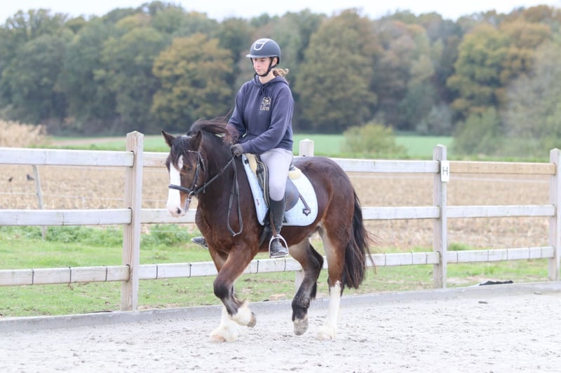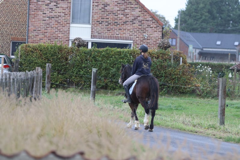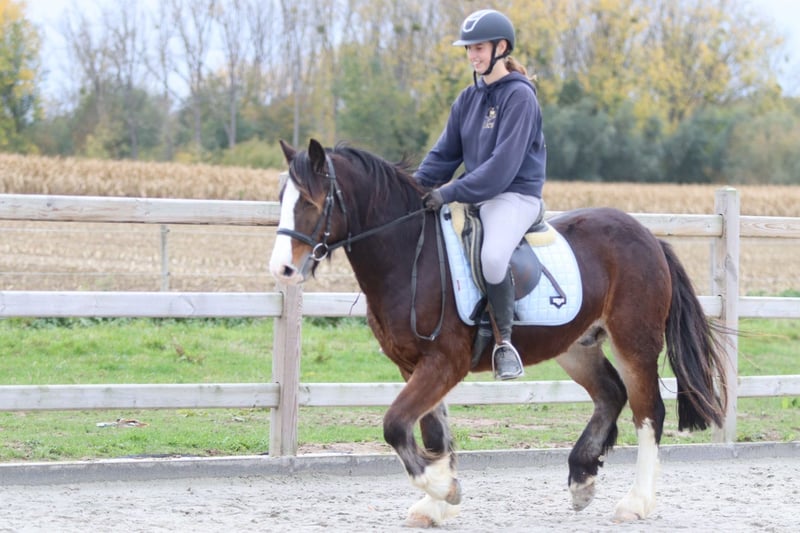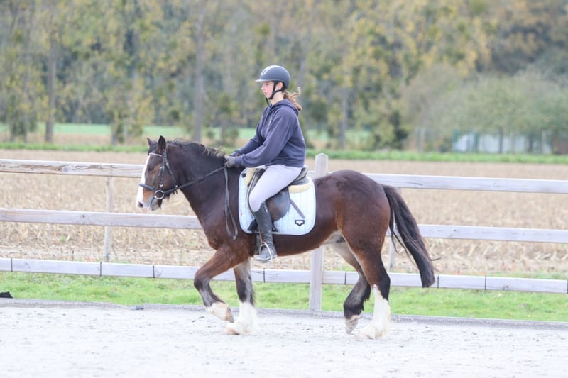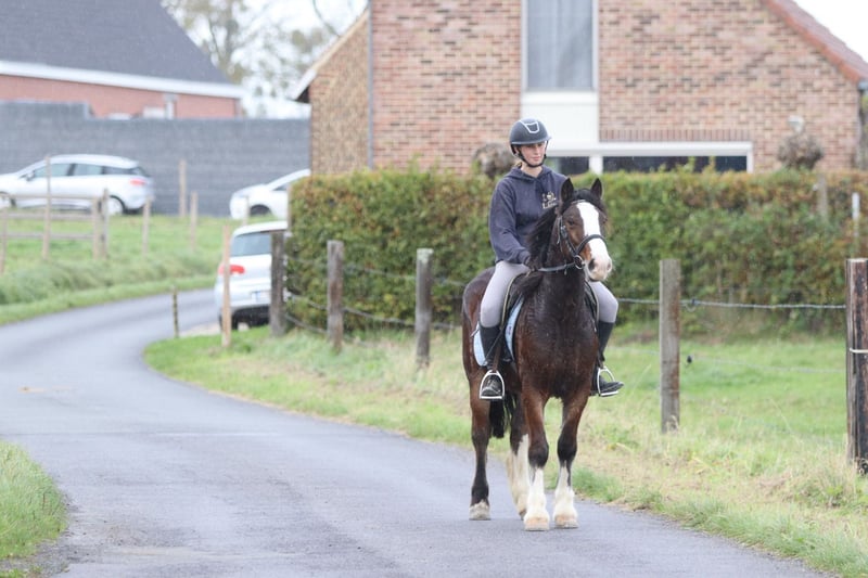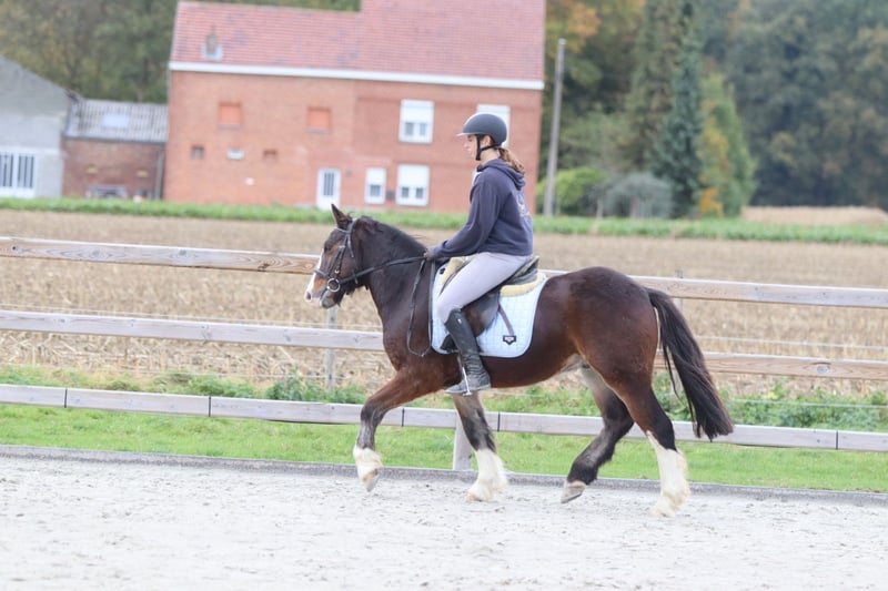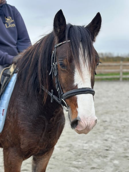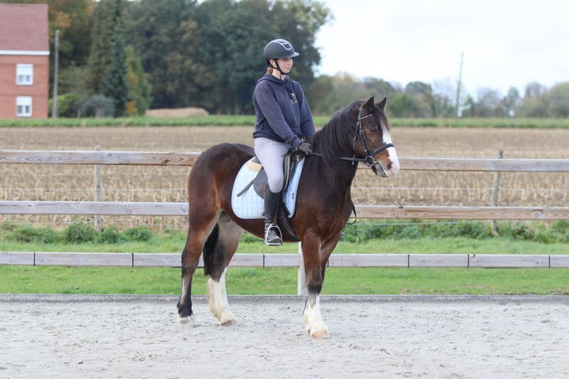 🤎 Joe 🤎 Gave Tinker pony, 4 years old – cob type, 1.42 m tall. Joe is truly a charming pony with a sweet, expressive head and a beautiful, strong build 🤍 🐎 Riding: – Knows the three gaits well and is well-behaved under saddle – Handles outdoor rides both alone and in groups without any issues – Calm and friendly with other ponies 👩🦰 Thanks to his size, Joe is also ideal for adult riders (the rider in the photos is 1.73 m). 📞 More info: 0032 475 68 22 43 📹 For videos: ask for our website