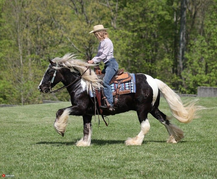 Wysłany do Cowgirl Cadillacs w Sheridan, WY. Sprzedaż 14-15 czerwca. Można licytować online, telefonicznie lub osobiście! Słodkie sny są z tego zrobione!!! CROSS CREEK SUGARFOOT nie mógł mieć bardziej pasującego imienia niż "Sugar"! Jest najsłodszym koniem z najbardziej dociekliwą osobowością i NIGDY nie spotkał obcego! Uwielbia, gdy dzieci zabierają go do "salonu piękności"; kąpiel, układanie włosów i bycie lśniącym to jego ulubione rzeczy! Ten koń jest bez wątpienia prawdziwą "Barbie". Sugar to dobrze zbudowany 14,2-godzinny, 4-letni, rzadko spotykany srebrny, cętkowany wałach rasy tobiano, zarejestrowany jako Gypsy Vanner! Ludzie kochają te konie za ich wszechstronność i spokojną naturę, a Sugar jest prawdziwym świadectwem tej rasy! Jeżdżono na nim po ranczu, pchano krowy, wypuszczano na pastwiska i doszkalano. Był jeżdżony przez dzieci po autostradach, przez miasto i jest bezpieczny w każdym ruchu ulicznym. Uwielbia jeździć po szlakach i po prostu pływać wolno i łatwo! Będzie pokonywał strumienie, rowy, kłody i poruszał się po nierównych, skalistych terenach, dbając o najcenniejszy ładunek (jeźdźca)! Sugar był wystawiony na wszelkiego rodzaju dzikie zwierzęta i pójdzie wszędzie, gdzie zostanie poproszony. Ma płynny jogging, ładny lope, kręci się w kółko w obie strony, przechodzi na boki i cofa się z łatwością! Sugar ma kilka sztuczek "w piórach" i położy się do wsiadania / zsiadania. Sugar był dosiadany przez dzieci w każdym wieku od 4 lat wzwyż i może być dopasowany do każdego poziomu umiejętności jeźdźca. Jeśli marzysz o wyjątkowym partnerze do jazdy konnej i najlepszym przyjacielu, słodkie sny się spełniają... po prostu dodaj Sugara! Więcej informacji pod numerem 606-308-2461.