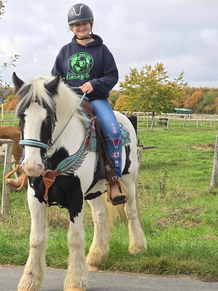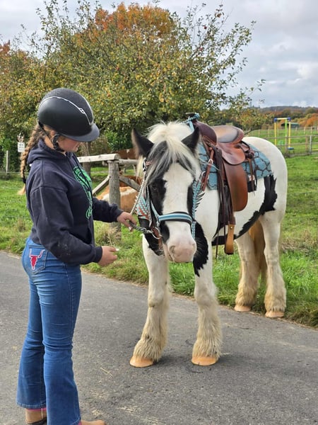 Traumtyp Tinkerbub ein Schmusebär - Toller Freizeitwallach ANTHONY *Geburtsjahr*: 2019 *Stockmaß*: 1,50m *Ausstattung*: E-Pass, Microchip und AKU vorhanden *Preis*: 5900,- € Er ist ein traumhafter, Tinkerwallach Wallach mit einem ausgeglichenen Wesen. Er eignet sich perfekt für das Gelände-, Wanderreiten und den Freizeitbereich – ob Englisch oder Western, macht beides mit Begeisterung. - Offenstall- und Herdenhaltung gewohnt, aber auch in der Box kein Problem - Absolut zuverlässig und entspannt im Umgang - Ein vielseitiger Partner für Reiter jeden Anspruchs ### *Zusätzliche Informationen:* - Zubehör und Transport können organisiert werden. - Unser Hofladen bietet eine kleine Auswahl an gebrauchten Westernsätteln. - *Ratenzahlung ist nicht möglich.* ### *Service für Kunden:* - Jeder Kunde erhält ein vertraglich festgesetztes *Umtauschrecht von drei Monaten.* - Ein Proberitt bei uns ist möglich, damit Sie Ihr Traumpferd kennenlernen können. Für 35 Euro können Sie reiten, sich ihn vorreiten lassen, spazieren gehen oder mehr. Auf Wunsch können Sie auch ein zweites Pferd testen. Dieser Betrag wird beim Kauf eines Pferdes am gleichen Tag selbstverständlich verrechnet. ### *Besonderheiten:* - Bei sofortiger Abholung mit Pferdeanhänger erhalten Sie *einen Nachlass von 100 Euro.* - Wir absolvieren den Verkauf mit einem transparenten Proberitt, um sicherzustellen, dass es das richtige Pferd für Sie ist. ### *Rechtliches:* - Wir sind alleinige und uneingeschränkte Eigentümer der Bilder; die Bildrechte liegen bei uns. *Fremdverwendung der Bilder ist verboten.* - Bitte beachten Sie, dass es sich um ein lebendes Pferd handelt. Unsere Angaben basieren auf den Eindrücken des Betreuers und stellen keine zugesicherten Eigenschaften dar. - Anzeigen werden sofort gelöscht, sobald die Pferde verkauft sind. *Interesse?* Rufen Sie uns gerne an unter *0171-4001968* (täglich von 8–20 Uhr). *Bitte keine Mails oder WhatsApp, nur Anrufe!*