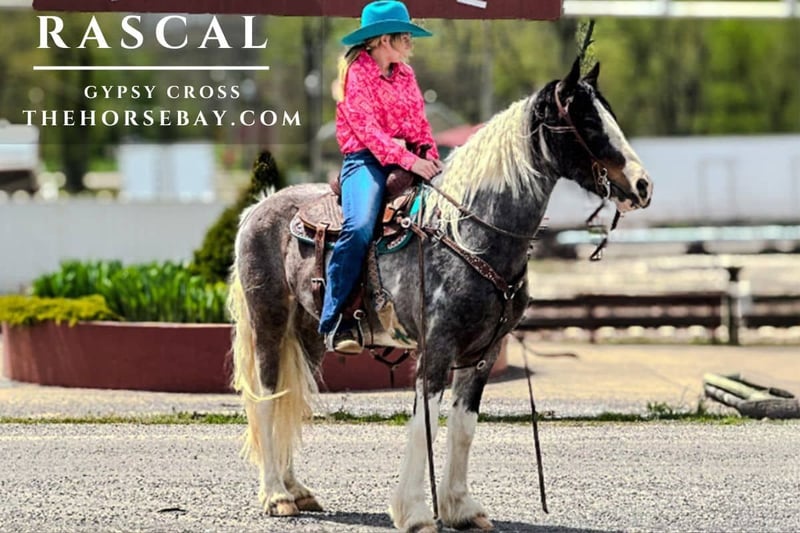 OPEN BIDDING ON THEHORSEBAY,COM. SALE ENDS ON 04/30 More information is available on the website, including an UTD vet inspection, Coggins, video, images, and the owner's contact information to ask questions, request information, or make arrangements to come to visit. Rascal is a 5-year-old Gypsy cross. He is very good-natured. Rascal stands just shy of 14.1. He stands to be saddled, is great for the farrier, loves to be bathed and groomed, loads with ease, and is the easiest horse to get along with! He handles rough terrain and water easily. He will go anywhere you point him and do whatever you ask of him, whether it’s a walk, trot, or lope. He has been trail ridden for miles and miles by our teenage kids. Rascal has been ridden through town. He loads and backs out of a trailer with no problems. He is definitely a beautiful horse to take on the trails!