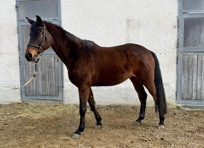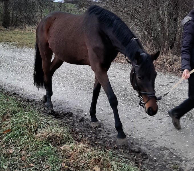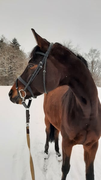Diese nun 13-jährige Stute von Impetus aus einer Louidor-Mutter kann ein Juwel für die Trakehnerzucht sein. Sie hat außergewöhnliche Bewegungen, die sie für die schwere Klasse der Dressur qualifizieren. Gleichzeitig machen ihre Unerschrockenheit, ihr Mut und ihr gutes Auge am Sprung sie zu einem großartigen Buschpferd. Beide Disziplinen wurden angeritten, und ihr Vermögen zeichnete einen erfolgreichen Weg vor. Es war aller Wahrscheinlichkeit nach ein Verladeunfall, der sich ereignete, bevor die Stute in meinen Besitz kam, der diesen Weg unterbrach. Die Stute ist seitdem nicht mehr reitbar und hat ein paar Handicaps, über die ich gerne bei Interesse Auskunft erteile. Es wäre eine Schande, sie der Zucht vorzuenthalten, es gehört nur ein wenig Mut dazu. Derzeit steht die Stute in der Nähe von Augsburg auf der Koppel, was das Aufnehmen von Bewegungsvideos bei diesen Bodenverhältnissen schwierig machte. Wenn sie jedoch für diese Decksaison noch vorbereitet werden soll, ist ein Verkauf genau jetzt richtig. Gerne kann sie während der Trächtigkeit und zum Abfohlen auch in diesem Stall (der gleichzeitig eine Zucht beherbergt) stehen bleiben. Auch eine Aufzucht des Fohlens ist dort möglich. Es kann also ganz einfach sein...