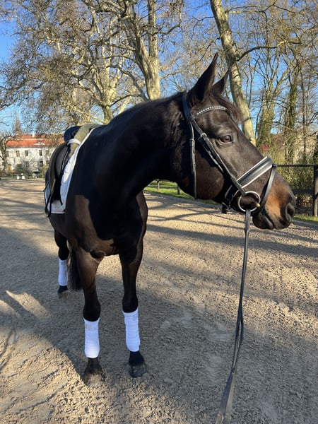 For sale is this 9-year-old Trakehner gelding by Sir Sansibar x Kentucky. Kadinsky has been with us since foalhood and has grown up in a herd environment. He is a very social horse, enjoys turnout in groups, and is accustomed to being outside 24/7 in summer. Kadinsky is a well-ridden, typically versatile Trakehner who finds joy especially in a varied daily routine. He has been introduced to dressage in a playful manner up to L-level. He is familiar with small jumps but has not been further trained in show jumping. He reliably and confidently hacks alone or in small groups. His sensitive and refined nature makes him a loyal partner once he has gained trust. Otherwise, he can sometimes become a bit unsure. Kadinsky has no experience with beginners or children so far. Kadinsky is being offered only reluctantly due to lack of time and only into the best hands. Priority over price! Current X-rays are available without findings. Videos via WhatsApp upon request.