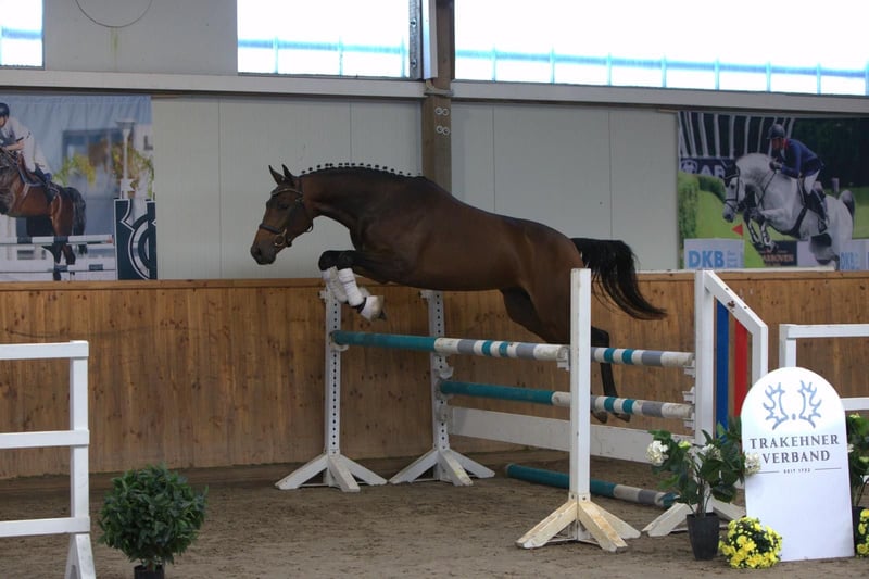 From the perspective of eventing excellence, this aspiring candidate for the crown of equestrian sport is hard to imagine being more classically bred: one of the very few offspring of a top-level athlete on German soil! His sire is considered an exceptional stallion and was celebrated as a star in the eventing scene in the USA. Sea Lion xx is a genetically highly interesting Thoroughbred, known for his wonderful temperament, willingness to perform, and remarkable talent. His outstanding quality has been demonstrated through numerous wins and placings at national and international championships, earning him the title of "Eventing Champion of the American Equestrian Federation." A highlight of his career was his participation in the Rolex Kentucky CCI**** in 2012. The dam is one of the very few Trakehner daughters of the exceptional Anglo-Arabian Bouquet AA, who also carries the finest genes from both parents, proven at international eventing and show jumping championships. Her son was raised under the best conditions and carefully prepared by a master for the pre-selection of the stallion market. In character, he is a gem; in his attitude, he brings only joy.