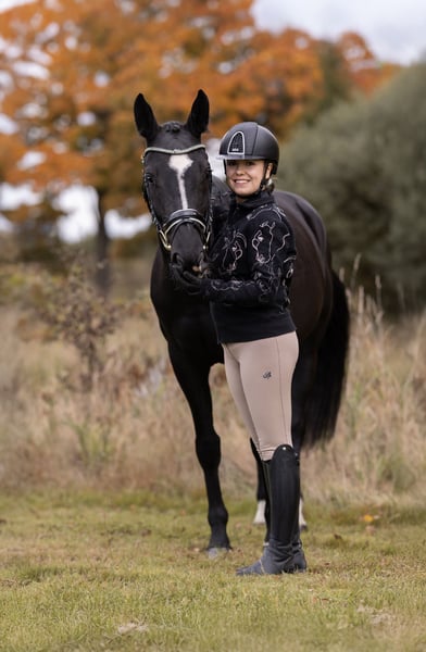Beautiful black gelding. He has excellent quality in all three gaits. Very easy to ride. Extremely kind and well-mannered. Ridden by a girl. Dressage and jumping experience. Very calm and reliable out field riding . X-rays available.
