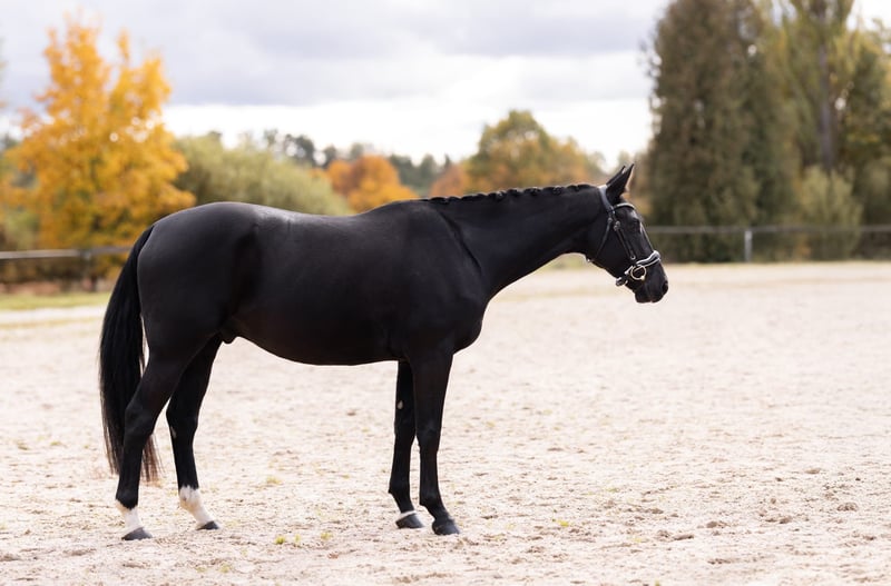 Schöner schwarzer Wallach. Er überzeugt in allen drei Grundgangarten durch hervorragende Qualität. Sehr leicht zu reiten. Äußerst freundlich und gut erzogen. Wird von einem Mädchen geritten. Erfahrung in Dressur und Springen vorhanden. Im Gelände sehr ruhig und zuverlässig. Röntgenaufnahmen vorhanden.