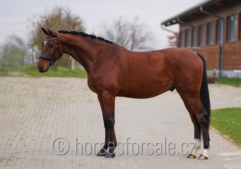 CLASSICO - a real dream horse, hunter/QE prospect with the best brain Classico is an amazing youngster with perfect brain. He has been ridden by a very amateur girl, which has no experience with jumping, but Classico is able to jump a nice course with her despite his age. He is always motivated to jump, doesn’t look any fence, is ready to handle rider’s mistakes which is exceptional for a horse at his age. He shows enough scope for the future, has really very nice character, auto lead changes and is ready for his show debut. Comes directly from breeder’s hand, x-rays are available. Future star for anyone and any ring. Born: 2021, height: 171 cm / 163-17hh, pedigree: Stalypso (Stakkato) x Cassilius https://youtu.be/GHs7amJaTy4 Location: Olomouc, Czech republic. Central Europe. Transport can be provided. *** more horses on my website www.horsesforsale.cz ***