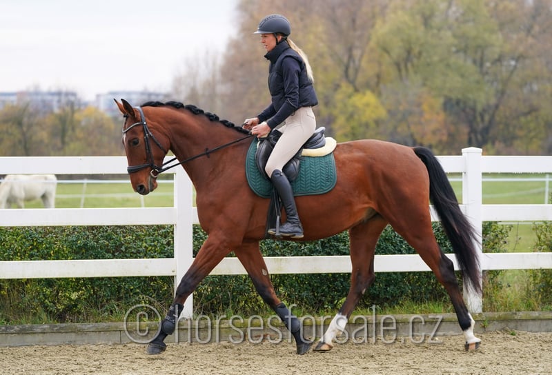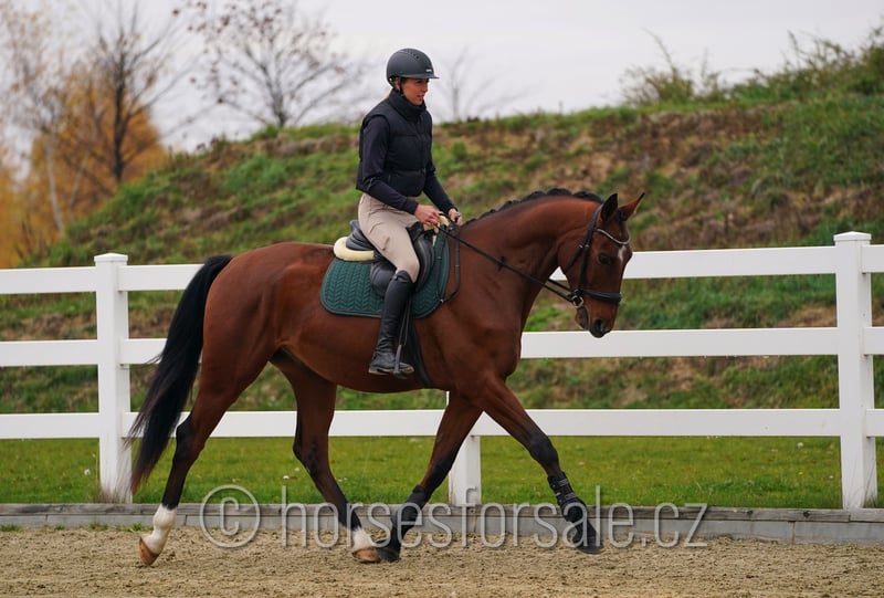 CLASSICO - ein Traumpferd für jeden Amateur Classico ist zwar noch jung, begeistert aber jeden durch tolle Einstellung. Er ist lernwillig, klar im Kopf, wird von einer Amateurin geritten, die selber keine Erfahrungen mit Springen kann, Classico kann mit ihr trotzdem ein kleines Parcour bis 1 Meter springen. Er hat perfekten Sprung, will immer springen, guckt sich keine Unterbauten an, ist gut ausbalanciert (macht einfach fliegende Wechsel) und zeigt am Sprung genug Vermögen für die Zukunft, es wird mal ein tolles 120/130-Amateurpferd. Classico begeistert auch durch seine Bewegung und tolle Einstellung, würde sich daher auch für Vielseitigkeit gut eignen. Geb.: 2021, Stockmaß: 171 cm, Abstammung: Stalypso (Stakkato) x Cassilius https://youtu.be/GHs7amJaTy4 Standort: Olomouc Tschechien, Transport kann organisiert werden. *** weitere Pferde unter www.verkaufspferde.cz ***
