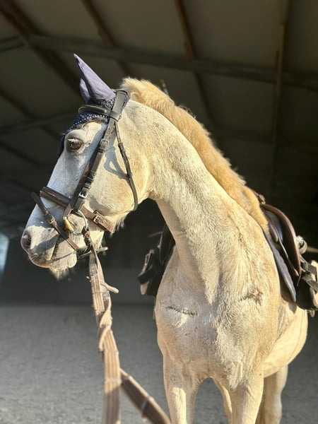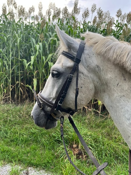 Charmanter Schimmelponywallach sucht liebevolles Zuhause 🐴 Zum Verkauf steht ein ca. 11-jähriges Schimmelpony (ca. 1,40 m), geboren in Ungarn. Aufgrund von Bestandsverkleinerung suche ich für ihn ein neues, passendes Zuhause. Er ist im Umgang lieb und zuverlässig, hat aber seinen eigenen Charakter – daher kein reines Anfängerpony. Kinder können ihn reiten, jedoch nur unter Begleitung eines erfahrenen Erwachsenen. Er ist sowohl alleine als auch in der Gruppe im Gelände unterwegs und zeigt sich dabei brav und unerschrocken. Zudem ist er barhuf unterwegs, schmiede- und verladefromm. In Ungarn hatte er einen Weideunfall, bei dem er einige Narben zurückbehalten hat – diese beeinträchtigen ihn jedoch in keiner Weise. Der Verkauf erfolgt inklusive komplettem Zubehör. Mir ist ein gutes, passendes Zuhause sehr wichtig, in dem er weiterhin liebevoll betreut wird. Bei Interesse freue ich mich über eine Nachricht.