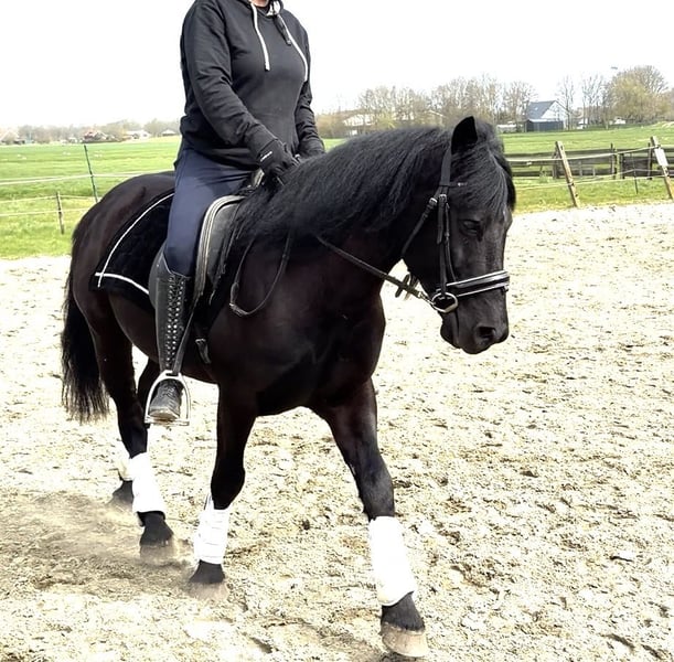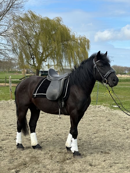🖤 Schwarze Perle mit einem kleinen Herz, die echte Liebe und Geduld sucht! 🖤 (Bitte die Anzeige sorgfältig lesen!) • D-Pony • Wallach • Geboren am 15.04.2019 • Stockmaß ca. 143 cm Er ist ein äußerst hübscher Vertreter! Ideal für kleine Erwachsene und Kinder ab 13 Jahren geeignet. Reiten & Möglichkeiten: Der Grundsitz ist vorhanden, er war noch nicht so fit im Reitplatz, lernt aber sehr schnell. Er war gerade ausgerichtet, die Biegungen im Körper waren etwas ungewohnt, aber das meistert er hervorragend! Er ist nicht heiß oder sensibel. Allerdings kann er manchmal vorwärts sein, bleibt aber stets brav. Er gibt dir Sicherheit, weil er ehrlich ist und fein auf die Hilfen reagiert – ein echtes Vergnügen, auf ihm zu reiten! Er kann etwas kräftig sein und hat manchmal einen eigenen Willen, daher ab 13+ (Reitergröße ca. 170 cm). Er verfügt über drei sehr schöne Gänge und ist ein vielseitiger Allrounder. Kaszino ist auch an Longieren gewöhnt, mag das aber nicht so sehr. Er kann super schön laufen, bei richtiger Ausbildung ist er auch für Dressur-Events geeignet und macht auch beim Springen eine gute Figur! Charakter & Umgang: ✔️ Ruhiges Wesen ✔️ Geduldig und gelassen ✔️ Liebt Kuscheln, wobei er das noch nicht so gut kennt ✔️ Zunächst vorsichtig, blüht aber langsam auf ✔️ Steht beim Putzen brav still und genießt das sehr! ✔️ Geht brav an der Hand mit und gibt seine Beine ordentlich. Der einzige Nachteil ist: Er schaut anfangs manchmal etwas unfreundlich auf neue Menschen, aber wenn man direkt auf ihn zugeht und ihn anspricht, ist alles wieder gut. Das ist eine Schutzreaktion, da er misstrauisch ist. Er muss erst lernen, dir zu vertrauen – auch beim Füttern zeigt er das, er greift nicht an! Du kannst bei ihm stehen bleiben, während er isst. Hier ist Aufmerksamkeit gefragt, an dieser Vertrauensbildung sollte gearbeitet werden. Momentan steht er seit einem Monat bei uns und ist ganz auf mich fixiert. Er schnurrt schon begeistert, wenn ich komme oder mit ihm rede. Er kann dein Herz definitiv erobern, denn insgeheim hat er ein kleines Herz. Er sollte zu jemandem kommen, der damit umgehen kann und nicht negativ darauf reagiert, denn sonst könnte es anders verlaufen. Mit Geduld, Liebe und Vertrauen wird er sich schnell bei dir öffnen und aufblühen. Dieses Schätzchen verdient wirklich ein Zuhause mit 10 Sternen, Geduld und vor allem viel LIEBE! Siehst du dich in der Lage, diesem super hübschen, lieben Kerl ein tolles Zuhause zu bieten? Und hast du kein Problem damit, dass er erst bei dir noch aufblühen muss, und kannst ihm die Liebe geben, die er verdient? Dann zögere nicht zu lange und komm vorbei, um diesen schwarzen Schatz persönlich kennenzulernen! 🤩 (Verkaufsgrund: Das ist mein Beruf) Zusätzliche Infos: • Bekannt mit Sattel (Videos vorhanden) • 24.03.: Entwurmt (Equest Pramox) • 26.03.: Beim Hufschmied • Kein Stammbaum, nur Pass Standort: Zwartewaal (ZUID-HOLLAND)