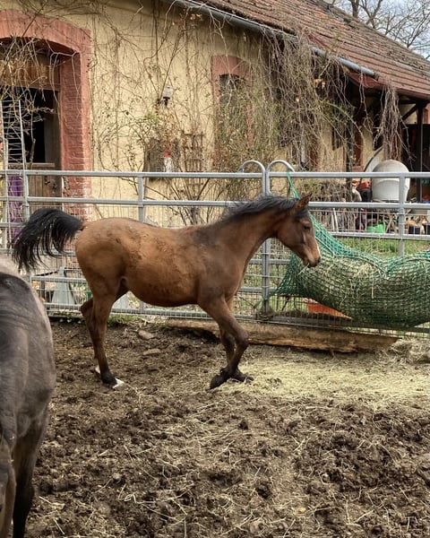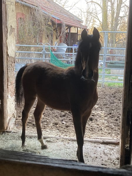 Due to personal reasons, I unfortunately have to part with my homebred filly. Ellie was born here last year (03/2025) and is well-behaved on a halter, already giving her hooves willingly. She is also easy to handle when it comes to the farrier. Thanks to her pedigree, Ellie is suitable for breeding, sport, and leisure riding. She has wonderful, elastic, and soft gaits that already indicate she will make a comfortable and talented riding horse! She can of course continue to stay here for raising; she currently shares a paddock overnight with a mare of the same age and is accustomed to turnout and stabling. She has grown up in a herd environment. Vaccinated, chipped, and regularly dewormed! Price is negotiable. Viewing highly recommended! Transportation possible. Please call or message via WhatsApp.