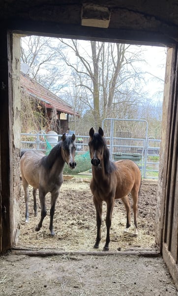 Aus privaten Gründen muss ich mich leider von meiner selbstgezogenen Jungstute trennen. Ellie wurde letztes Jahr (03/2025) bei mir geboren, geht brav am Halfter und gibt schon brav Hufe. Sie ist auch schon brav beim Schmied. Ellie ist aufgrund ihrer Abstammung sowohl für die Zucht, den Sport als auch für die Freizeit interessant. Ellie besitzt wunderbare, elastisch-weiche Gänge, welche jetzt schon auf ein tolles und komfortables Reitpferd hindeuten!! Sie kann natürlich auch weiterhin zur Aufzucht da bleiben, steht mit einer gleichaltrigen Stute gemeinsam über Nacht zusammen, tagsüber dann draußen, kennt daher Koppel und Box. Ist im Herdenverband aufgewachsen. Geimpft, gechippt und regelmäßig entwurmt! Preis ist VHB. Ansehen lohnt sich! Transport möglich. Bitte anrufen oder per WhatsApp anfragen :)