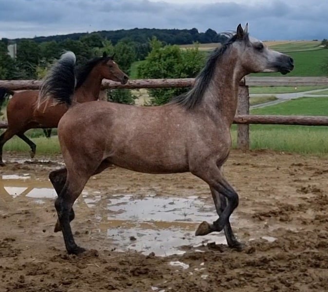 Basilio W, 3-year-old young stallion by Eifell Meia Lua out of the pure Spanish Belleza by El Perfecto gray without markings, currently approx. 152cm tall Basilio is currently in stallion rearing and is very well integrated there. He is characterized by his very good character and his calm nature. He has a very good body and top basic gaits. Basilio is healthy and has no abnormalities. An ideal young stallion (or gelding) for sport, leisure and family.