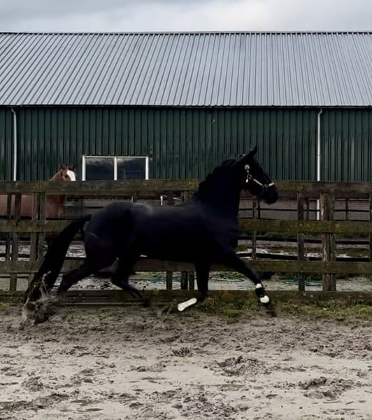 Hele gave 4,5 jarige PRE X Fries gitzwarte merrie ze is 160 groot met veel body en zal zeker nog wat groeien. Libby kan extra bewegen en heeft 3 hele goede gangen. Ze is op wat longeren na nog groen en nog helemaal onbeleerd. ze is in het bezit van een paspoort. Lief paard