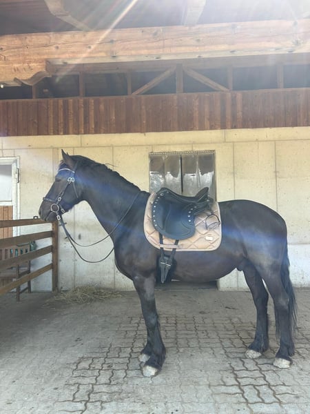 Verkaufe einen eleganten Warlander-Wallach, geboren im Jahr 2018. Der Rappe besticht durch sein freundliches Wesen und seine beeindruckende Präsenz. Mit einem Stockmaß von 156 cm eignet er sich hervorragend für den Freizeitbereich und ist ideal für Reiter, die ein zuverlässiges und gut gerittenes Pferd suchen. Er deckt auch sehr gut größere Reiter ab. Pablo überzeugt durch seine robuste Konstitution, seine angenehme Gangart und seinem angenehmen Charakter. Er ist ausgebildet im Freizeitbereich und zeigt sich im Umgang stets freundlich und gelassen. Anfangs testet er nur ganz leicht am Boden, aber wenn sein neuer Besitzer etwas Erfahrung mitbringt, ist das überhaupt kein Thema. Pablo möchte gerne "der einzige Prinz" für seine neue Besitzerin/neuen Besitzer sein (das ist auch der Grund warum ich ihn verkaufe - besitze noch weitere Pferde) Dieses Pferd ist eine wunderbare Ergänzung für jeden Freizeitreiter, der Wert auf ein zuverlässiges und charismatisches Pferd legt. Leider hat Pablo ein Ekzem, welches aber mit Decke und etwas Pflege sehr gut in den Griff zu bekommen ist. Es kann auch passendes Equipment gegen Aufpreis dazu erworben werden. Bei Interesse freuen wir uns auf Ihre Kontaktaufnahme.