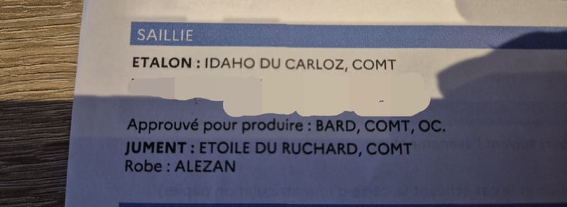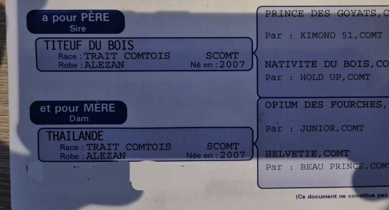 Trait Comtois merrie met veulen aan de voet – met afstamming Te koop is de 11-jarige Trait Comtois merrie Etoile du Ruchard. Zij is geregistreerde fokmerrie en beschikt over volledige afstammingspapieren. Etoile du Ruchard staat momenteel met een veulen aan de voet. Het veulen is geboren in juni 2025, is momenteel 3 maanden oud en heeft een volledige afstamming. Voor het veulen is een dekkingsbewijs aanwezig. Het veulen is gezond en ontwikkelt zich goed voor zijn leeftijd!!! De merrie is bij de vorige eigenaar zowel als koetspaard als als rijdier gebruikt. Ze is sterk, ras-typisch en biedt een solide basis voor fokkerij, recreatie of werk in het tuig. Details in het overzicht: Ras: Trait Comtois Merrie, 11 jaar, naam: Etoile du Ruchard Schofthoogte 168 cm Geregistreerde fokmerrie met afstamming Veulen aan de voet, geboren 06/2025, met volledige afstamming en dekkingsbewijs Tot nu toe ingezet: Koets & Rijden Momenteel rustpauze, vanwege het veulen!!! Dat betekent dat de merrie momenteel niet wordt gewerkt!!! Afbeelding 4 Afstamming van de merrie Afbeelding 5 Afstamming van het veulen Bezichtiging op afspraak altijd mogelijk. Verdere informatie op aanvraag.