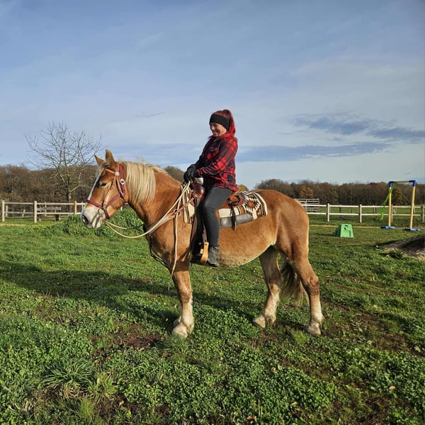 Przepiękny, przyjazny koń rekreacyjny do sprzedaży! 3,5 roku Wysokość w kłębie: ok. 1,58 m Cena: 6 300 zł Wera to urocza, dobrze zbudowana klacz o łagodnym usposobieniu i zrównoważonym charakterze. Zachwyca spokojnym temperamentu i otwartym, przyjaznym dla ludzi charakterem – idealna dla osób poszukujących niezawodnego konia rekreacyjnego z klarownymi nerwami. Niezależnie od tego, czy w terenie, na placu czy podczas codziennego kontaktu: WERA zawsze jest uprzejma i opanowana. Dzięki swojej opanowanej naturze i pewności kroków jest również doskonała na wycieczki konne. ✅ Właściwości NORY: mikroczip i paszport elektroniczny – AKU • Przydatna w terapii • Bardzo spokojna, odważna i klarowna w głowie • Posłuszna podczas codziennej obsługi (czyszczenie, prowadzenie, siodłanie itp.) • Dobrze zbudowana • Aktualne badanie przedzakupowe dostępne! • Świetna na rekreację, dla rodzin – i na wycieczki konne – posiada wszystkie cechy, aby być wiernym partnerem rekreacyjnym Nasze konie – troskliwie pielęgnowane: • Regularnie odrobaczane • Kontrolowane i pielęgnowane przez kowala • W razie potrzeby poddawane osteopatii W naszym sklepie na gospodarstwie znajdziesz używane siodła westernowe, uzdy, ogłowia i wiele więcej. Akcesoria i transport chętnie zorganizujemy dla Ciebie w korzystnej cenie! Nasza oferta dla Ciebie: Abyś mógł podjąć decyzję z pełnym spokojem: • 3 miesiące gwarancji wymiany (umownie ustalone) • Możliwość próbnego przejazdu: → 35 € za pierwszego konia, 25 € za każde kolejne – przy zakupie tego samego dnia odliczane od ceny • Spędzanie czasu z koniem, jazda, spacer lub możliwość jazdy przed koniem • 100 € zniżki przy natychmiastowym odbiorze lub transporcie tego samego dnia • Osobiste wsparcie i szczere doradztwo podczas jazdy próbnej Zainteresowany? Czekamy na Twój telefon!
