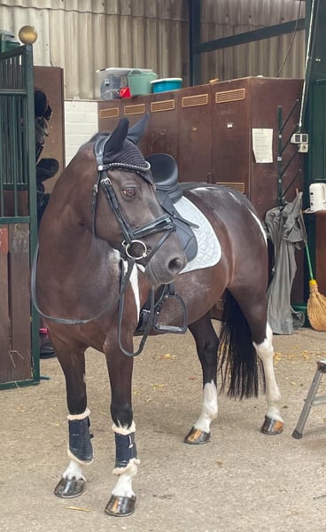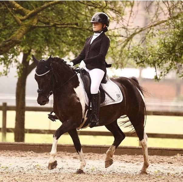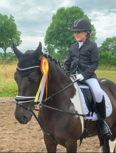 Romy, Stute, 138 cm, Jahrgang 2009. Schweren Herzens suchen wir für unsere Romy ein neues Zuhause, da der Umstieg auf ein Kleinpferd ansteht. Romy ist ein echtes Verlasspony : unsere Tochter durfte mit ihr erfolgreich ihre ersten Turniererfahrungen sammeln – bis hin zu Platzierungen in der A-Dressur und sogar zum Titel des Kreismeisters. Ein tolles Pony, um Kindern den Einstieg in den Reitsport zu ermöglichen und gemeinsam schöne Erfolge zu feiern. Sie kennt die Arbeit in der Halle und auf dem Platz, genauso wie Ausritte und meistert auch kleinere Hindernisse. Im täglichen Umgang ist sie unkompliziert: • geht gerne in der Herde auf die Weide • kennt Schmied, Führanlage und Hängerfahrten • regelmäßig geimpft, beim Zahnarzt und Physio vorgestellt • stets gesund und fit Romy ist ein liebenswertes Familienpony, das Kinderherzen höherschlagen lässt und nun ein neues „Für-immer-Zuhause“ sucht.