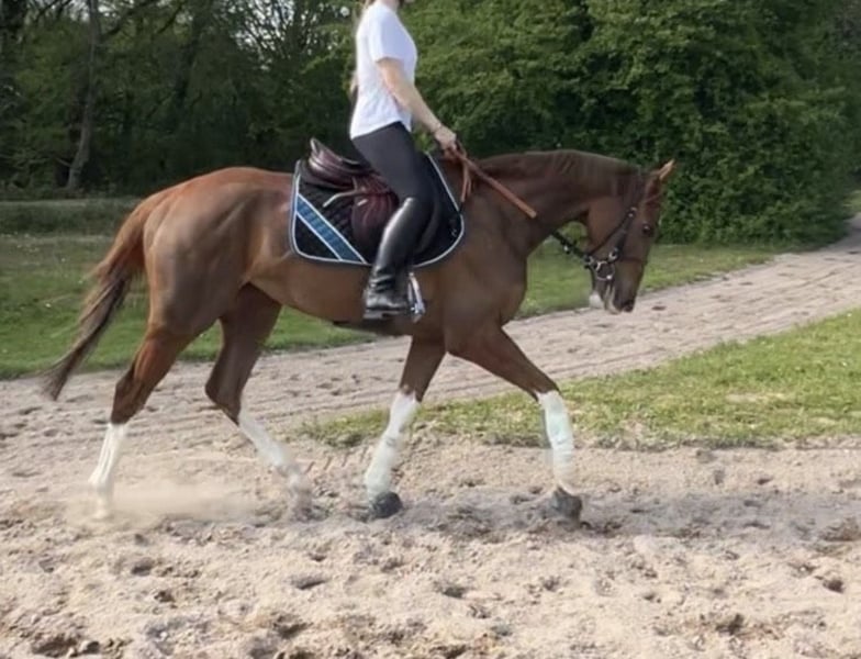 Socke ist 3 Jahre alt, eine Stute und überzeugt durch ihr freundliches und unkompliziertes Wesen. Sie ist unerschrocken, aufmerksam und immer brav im Umgang. Mit ihrer Blesse und den 4 hochweißen Beinen ist sie ein echter Eyecatcher. Sie ist sowohl im Gelände als auch auf dem Reitplatz zuverlässig und zeigt sich stets lieb und ausgeglichen. Auch mit anderen Pferden versteht sich Socke gut. Durch ihre Größe von 1,51m eignet sich Socke auch ideal als Familienpony. Aufgrund ihres jungen Alters steht sie jedoch noch am Anfang ihrer Ausbildung und benötigt weitere Förderung. Mit ihrem Wesen und ihrer Einstellung kann ich sie mir in Zukunft auch sehr gut in der Vielseitigkeit vorstellen. Bei Interesse freuen wir uns über eine Nachricht!