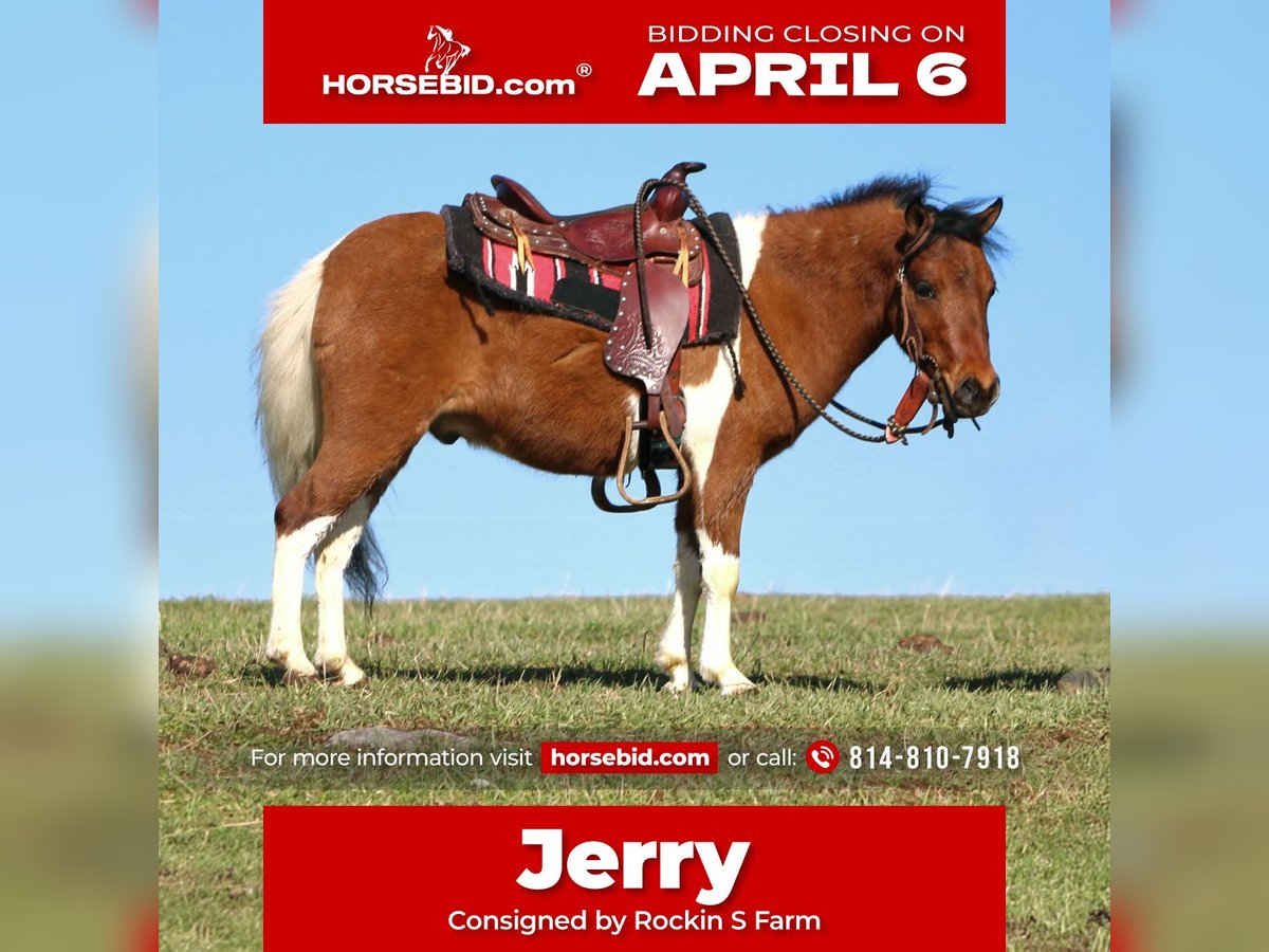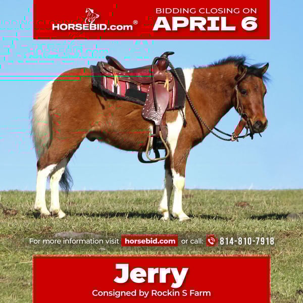 🌟𝑨𝒑𝒓𝒊𝒍 𝐀𝐋𝐋 𝐒𝐓𝐀𝐑 𝐋𝐈𝐍𝐄𝐔𝐏🌟 Happening now thru MONDAY | APRIL 6th - Available EXCLUSIVELY on HorseBid's website! For more details and to register visit: www.Horsebid.com CONSIGNOR CONTACT: Rockin S Farm 814-810-7918 LOCATION: Rebersburg, PA BREED: Pony REGISTERED: No COLOR: Paint HEIGHT: 36" AGE: 3 GENDER: Gelding Meet this pretty little guy we call Jerry, he has been handled and babysitting the kids since he was a weanling , he is trained to ride and drive both and has been ridden out on the trails as well as around the farm and in the arena either way he is a calm and gentle guy that handles any situation like a gentleman, plus he's safe for the children and is easy to get along with Jerry has also been driven on the main road and doesn't mind big trucks or loud traffic, he's also good with farm equipment and other animals. Jerry will ride out alone or with a group and doesn't get barn or buddy sour, he sells 100% sound with no founder issues or maintenance He is up-to-date on coggins and has a health certificate ready for his new home If you have any questions please feel free to reach out to Sam 814-810-7918 We are happy to help arrange shipping anywhere in the US