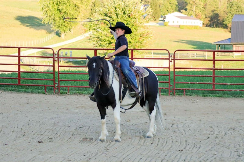 ⚜️ 𝓽𝓱𝓮 𝐇𝐨𝐫𝐬𝐞𝐦𝐚𝐧'𝐬 𝓢𝓱𝓸𝔀𝓬𝓪𝓼𝓮⚜️ Happening now thru MONDAY | DECEMBER 1st - Available EXCLUSIVELY on HorseBid's website! For more details and to register visit: www.Horsebid.com CONSIGNOR CONTACT: MW Equine Stables LLC 330-365-0233 LOCATION: Fresno, OH BREED: Pony REGISTERED: No COLOR: Black & White HEIGHT: 0 AGE: 4 GENDER: Gelding Flash is a 4 yr old pinto pony gelding standing 49 inches tall. He was born and raised here on the farm! Flash is broke broke broke! He has 3 beautiful gaits, walk, trot, canter and moves off of leg cues . Takes both leads and is fun to ride. He isn’t bothered by the bull whip, the tarp, or the ball. He rides English, western, bareback, or bridleless- whichever you prefer ! Flash has also been introduced to jumping and is very willing. He would make a fantastic English riding pony or a western pony . Making the perfect match for every child.. He is great on trail rides and has been on moonlight rides and big group trail rides. He goes out alone, crosses logs, creeks, and more! Flash is as close to perfect as one can get to take for a ride and teach kids the ropes. Flash is safe on the road to ride or drive. He drives the absolute very best and is traffic safe . The kids drove him to school quite a bit last year! If you’re looking for a safe pony that can do anything you’re looking for, this is the one! Don’t miss him. ☑️10 Day - Money Back Guarantee‼️