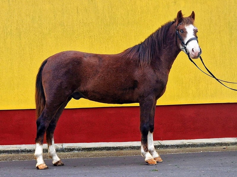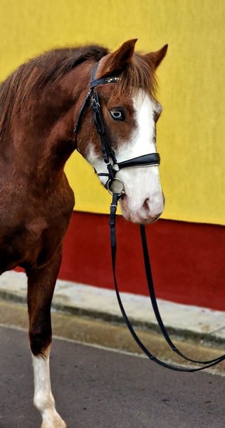 For sale is a stunning gelding with a special coat color: dark chestnut with striking blue eyes! Donny is 4 years old and stands at 14.1 hh. Due to his sturdy build, he is suitable for larger riders as well. He is ridden recreationally in the arena and in the field in all three gaits and has an absolutely wonderful temperament. He is simply a horse that brings joy all around! You can enjoy relaxed rides or also do some work in the arena. He is also very affectionate and incredibly sweet! He has a calm and steady demeanor and is perfect for therapy, riding lessons, or educational riding. He is also driven single and pair. Feel free to arrange a visit at any time. Further information, photos, and videos are available upon request via WhatsApp.