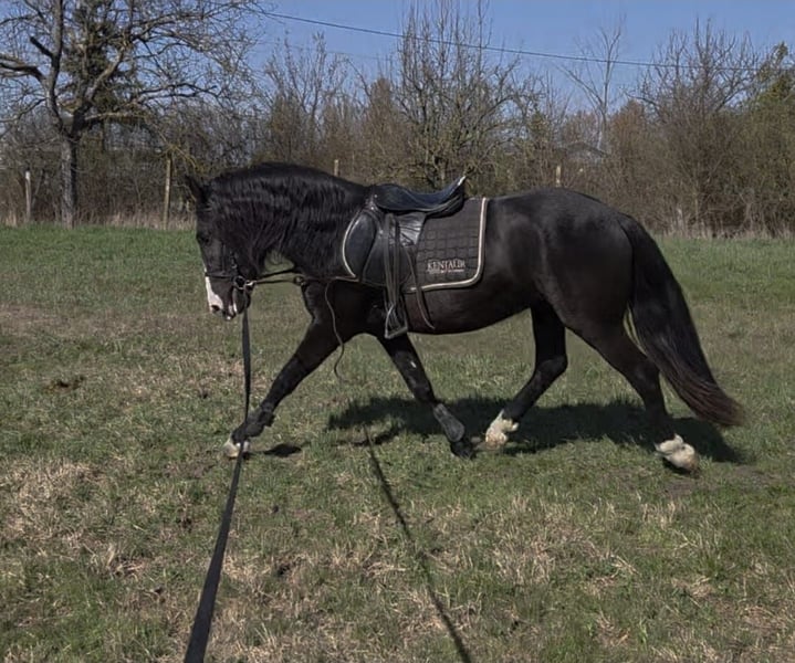 🎨 Picaso 🎨 147 cm (15 hh) 4 ans Hongre Pour son âge, il est calme et coopératif, ce qui en fait un cheval idéal pour les débutants, les enfants et les cavaliers de loisirs. Il est bien dressé, calme et équilibré. Facile à manipuler, attentif et coopératif, il constitue un excellent cheval de loisir. Picaso est montable en allures trot, pas et galop, il se déplace de manière confortable et stable, et il se laisse monter sans problème en carrière, ce qui rend le travail avec lui agréable pour tous les cavaliers. Soigné, en bonne santé, avec passeport Pferdepass. +49 176 40177894