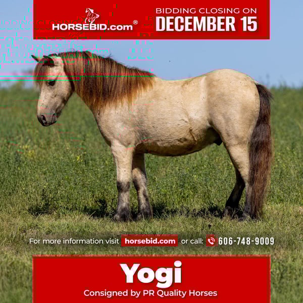 🎄𝐓𝐇𝐄 𝑯𝒐𝒍𝒊𝒅𝒂𝒚 𝐂𝐋𝐀𝐒𝐒𝐈𝐂🎄 Happening now thru MONDAY | DECEMBER 15th - Available EXCLUSIVELY on HorseBid's website! For more details and to register visit: www.Horsebid.com CONSIGNOR CONTACT: PR Quality Horses 606 - 748- 9009 LOCATION: Ewing, Ky BREED: Pony REGISTERED: No REGISTERED NAME: Yogi COLOR: Buckskin HEIGHT: 39 Inches AGE: 4 GENDER: Gelding 🎄 ✨ Yogi — The Ultimate Beginner’s Buckskin Pony ✨ 🎄 If you’re looking for the perfect first pony for a little cowboy or cowgirl this Christmas, meet Yogi—a 39-inch, 4-year-old buckskin gelding with the personality everyone wishes they could find in a child's pony. Yogi has an incredibly sweet disposition and gentle demeanor. He is the type you can truly turn your kids loose on without a worry. He’s patient, steady, and kind, making him the ideal partner for young riders who are just learning the basics.—He’s a true companion for any little cowboy or cowgirl. This little gelding has been trail ridden and takes everything in stride. He will walk, trot, and canter, and stays quiet and willing the whole time. Yogi is also broke to ride and drive, giving kids even more ways to learn and have fun. On the ground, he is just as dependable. Yogi is super gentle, easy to tack, harness, catch, and handle, and he stands perfectly for baths, grooming, mounting, and anything else you need to do with him. He’s respectful, people-oriented, and always eager for attention. He will be the first one to meet you at the barn, happy as can be. And to top it all off—he’s the perfect color. Yogi’s beautiful buckskin coat and sweet, soft expression make him just as handsome as he is trustworthy. Yogi is truly the ultimate beginner pony—safe, simple, forgiving, and ready to teach kids the right way. Whether they’re learning to steer, tack up, brush, or simply build confidence around horses, he’s the kind you can trust to take care of them. 🎁 If you want a Christmas pony your child can love, learn on, and grow with—Yogi is the one.