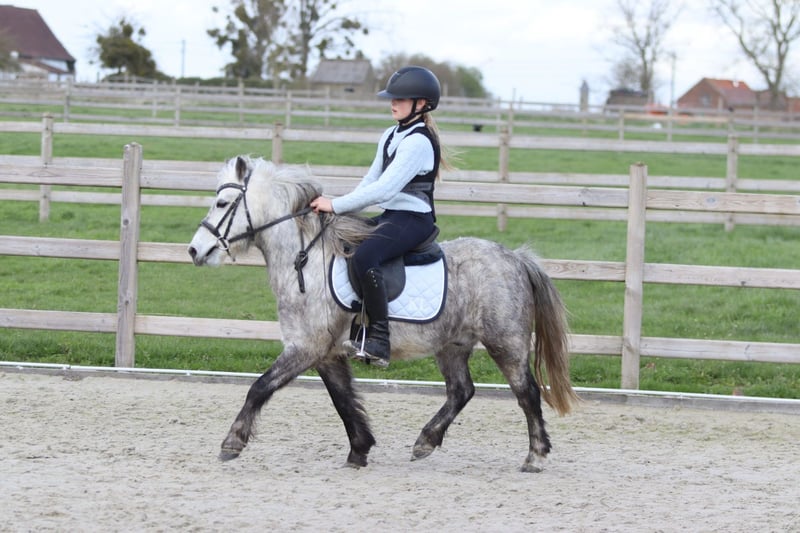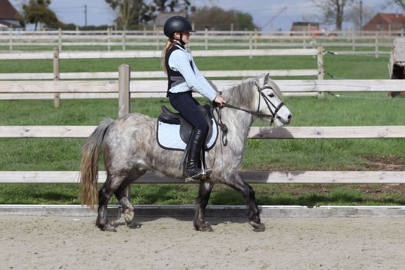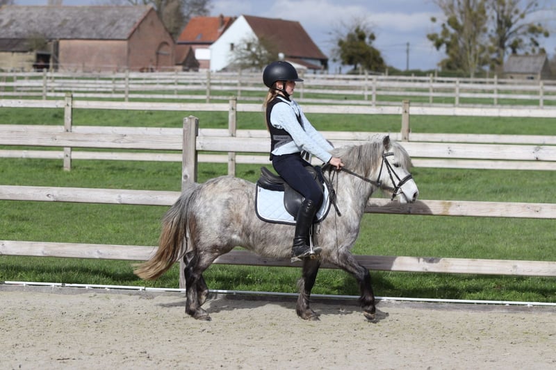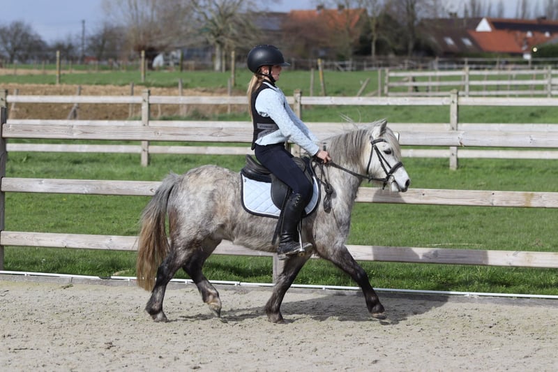 Romeo est un adorable poney de 5 ans, d'environ 1,15 m au garrot. C'est un véritable câlinier avec un caractère doux. En société, c'est une véritable perle et il s'entend très bien avec d'autres poneys. Romeo maîtrise parfaitement les trois allures et se montre agréable à monter. Il saute également avec enthousiasme et accepte volontiers les sorties en extérieur. Il constitue ainsi un poney de loisir polyvalent idéal, dont un jeune cavalier prendra beaucoup de plaisir à profiter. Plus d'informations ? 0032 475 68 22 43 Pour voir des vidéos, rendez-vous sur notre site internet.
